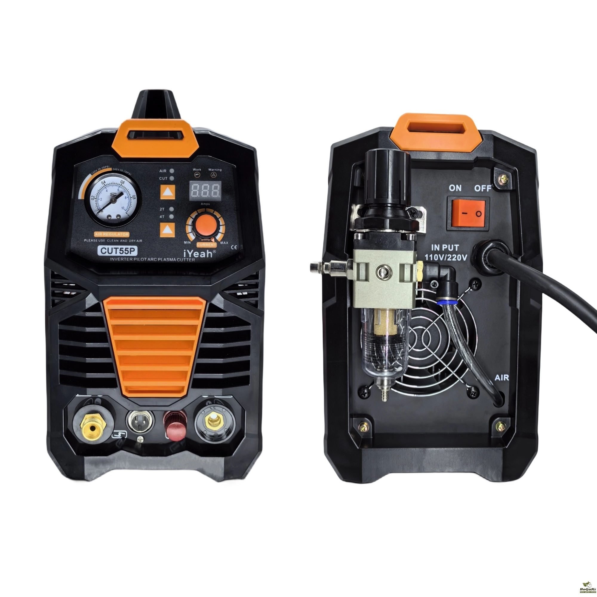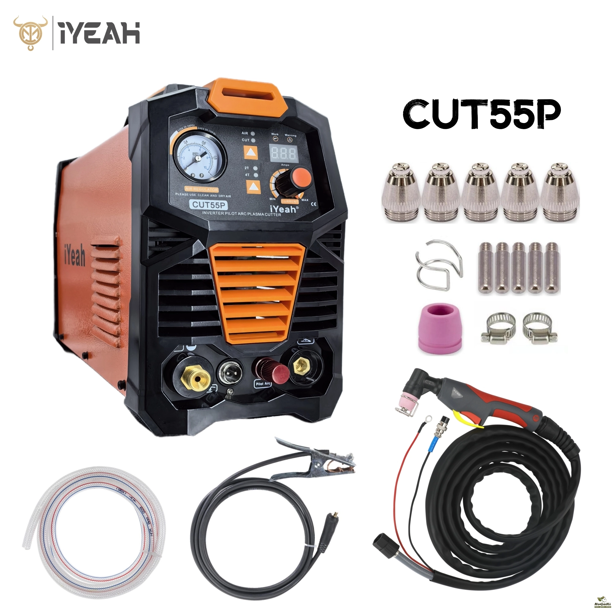 HF Pilot arc Plasma cutting machine CUT55P is developed by iYeah Technology Co., Ltd, HF pilot arc Heavy Duty efficient Digital controller. This machine is single phase/three-phase inverter cutting machines on the market. With quality torch fixed safety plasma plug, The fast connection quick to release torch and ground clamp. The machine is easy to operate in terms of settings, Display show cutting amps help user adjust the current to cut different metal. Cutting thickness for this machine is 20mm at 70 psi with good performance, Max cutting thickness can reach at 20mm if needed for a short run. Torch standoff and 5 set of consumables included.