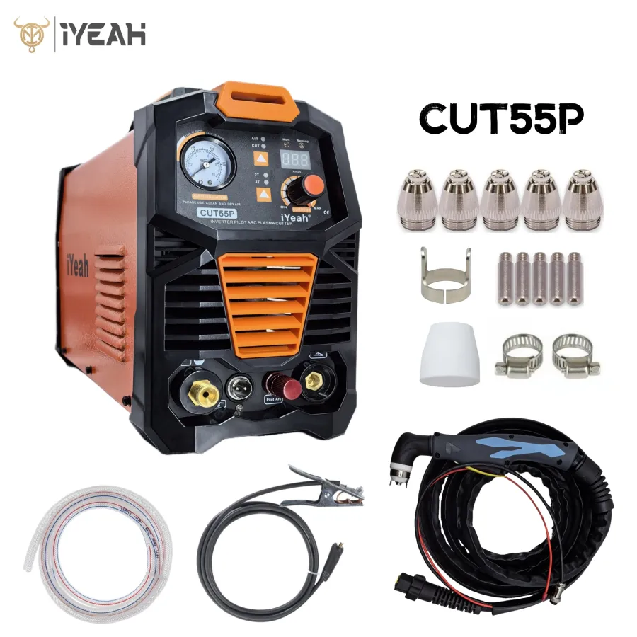 CNC Non-HF Pilot Arc CUT55 CNC iYeah Plasma Cutter 110V/220V 55A Machine With PT60/PTM60 Straight Torch Easy Cutting 25mm