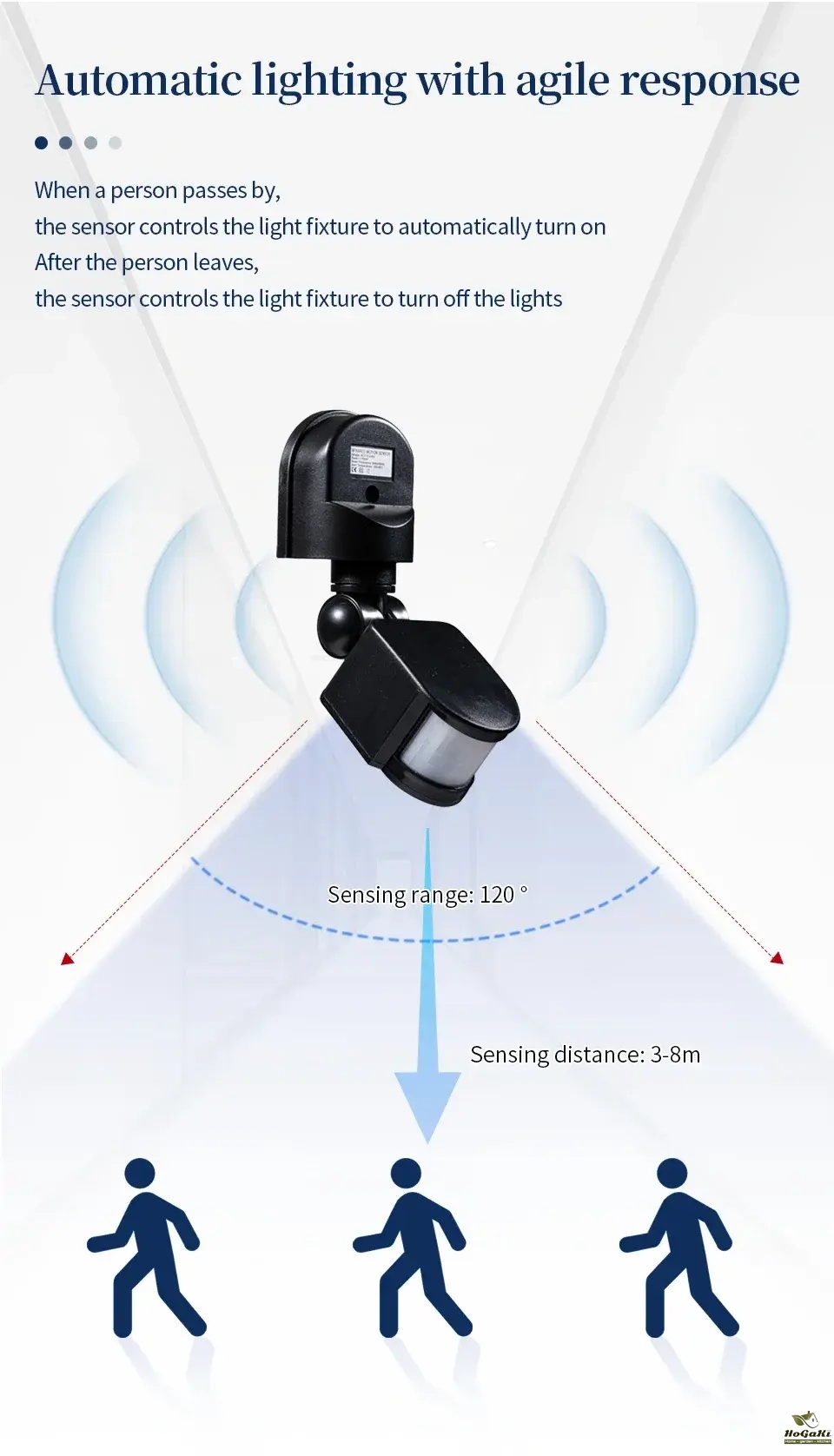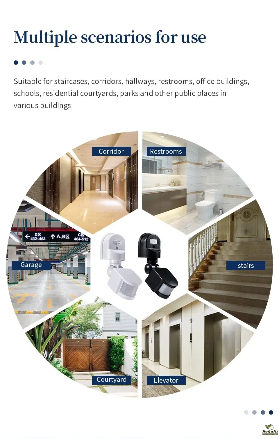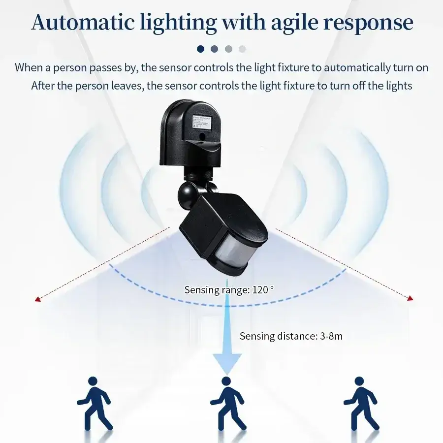 The smart new products, increase the sensor sensitivity can be adjusted (using the SENS knob to adjust) function, increasing the sensor head can be up and down and left and right (up and down 90 degrees, about 160 degrees) can adjust the function, but also increased the induction angle. Product systemic waterproof, can be used indoors and outdoors.