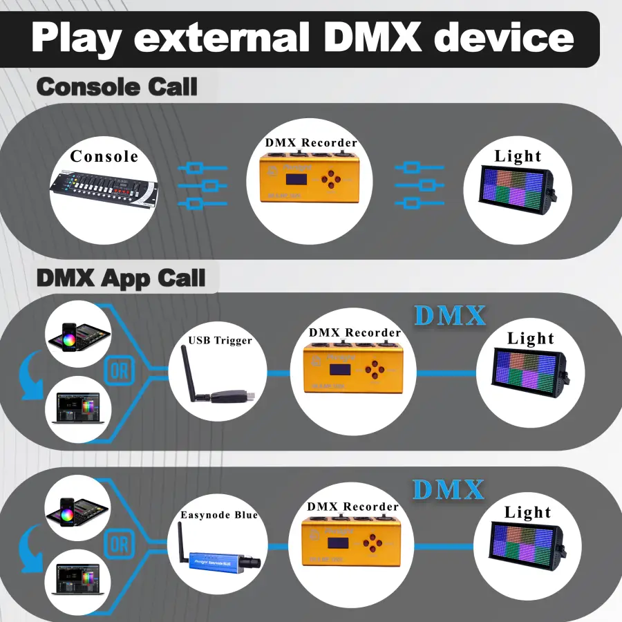 A: Yes, it automatically plays DMX lighting shows synchronized with their matching music tracks, perfect for DJ gigs, weddings, stage events, or parties.