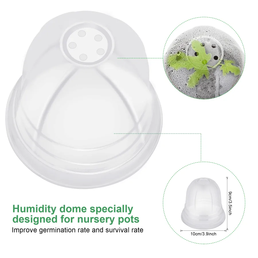 Plant Nursery pot with humidity dome can keep the moisture and temperature. This humidity will improve germination rate and survival rate. Dome height: 3.5'' Inch.
