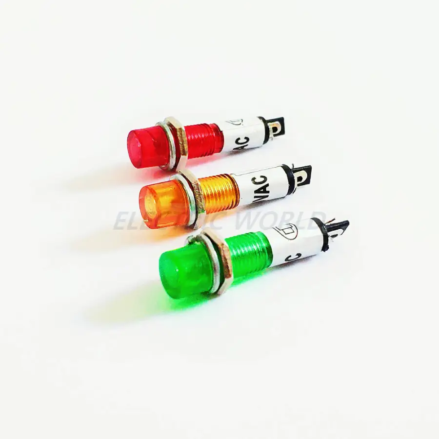 LED 7mm hole 5PCS Metal plastic Indicator lights waterproof Signal lamp 12V 24V 220v no wire power signal lamp LED indication