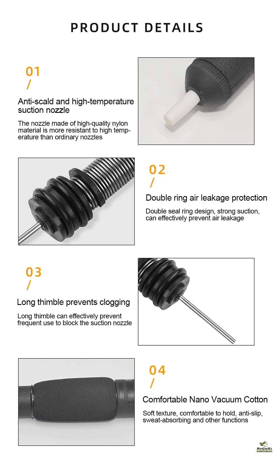 2.With powerful suction for solder removal,can be operated by one-handed, not easy to make mistakes.