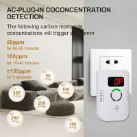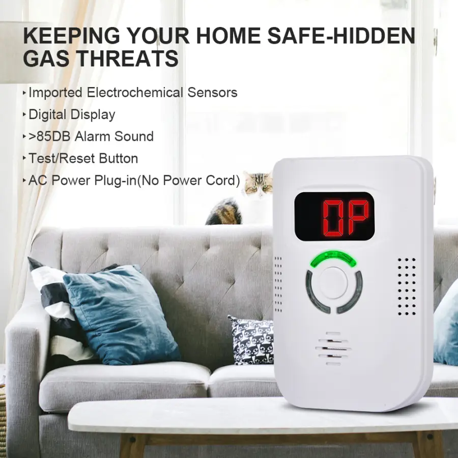 Human Voice Warning - The plug in carbon monoxide detector is suitable for 24 hours gas leak monitoring, When a carbon monoxide gas leak occurs, it can quickly identify the gas and emit an alarm > 85 decibels to avoid dangerous accidents.