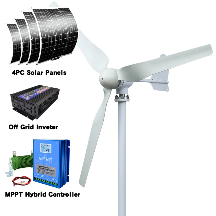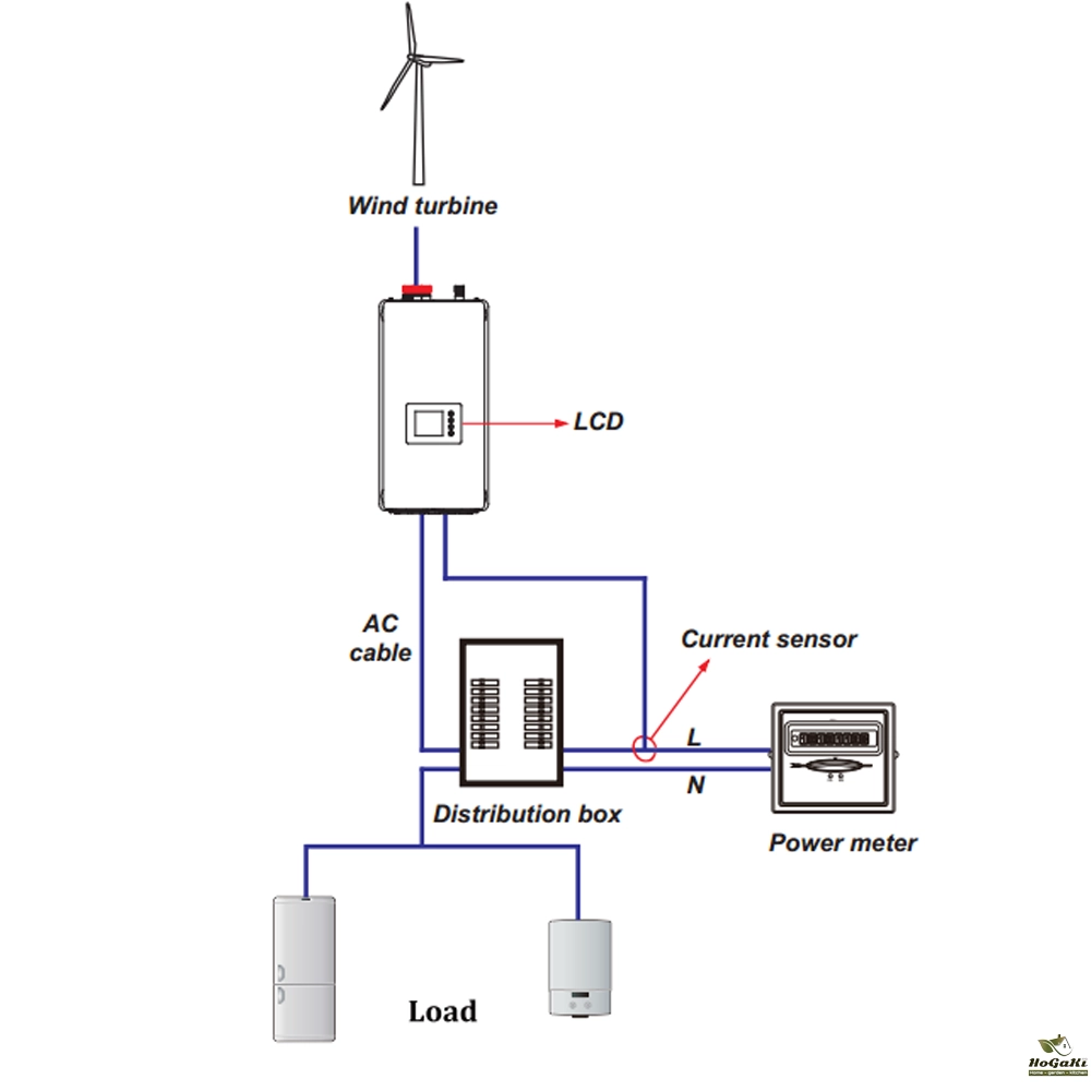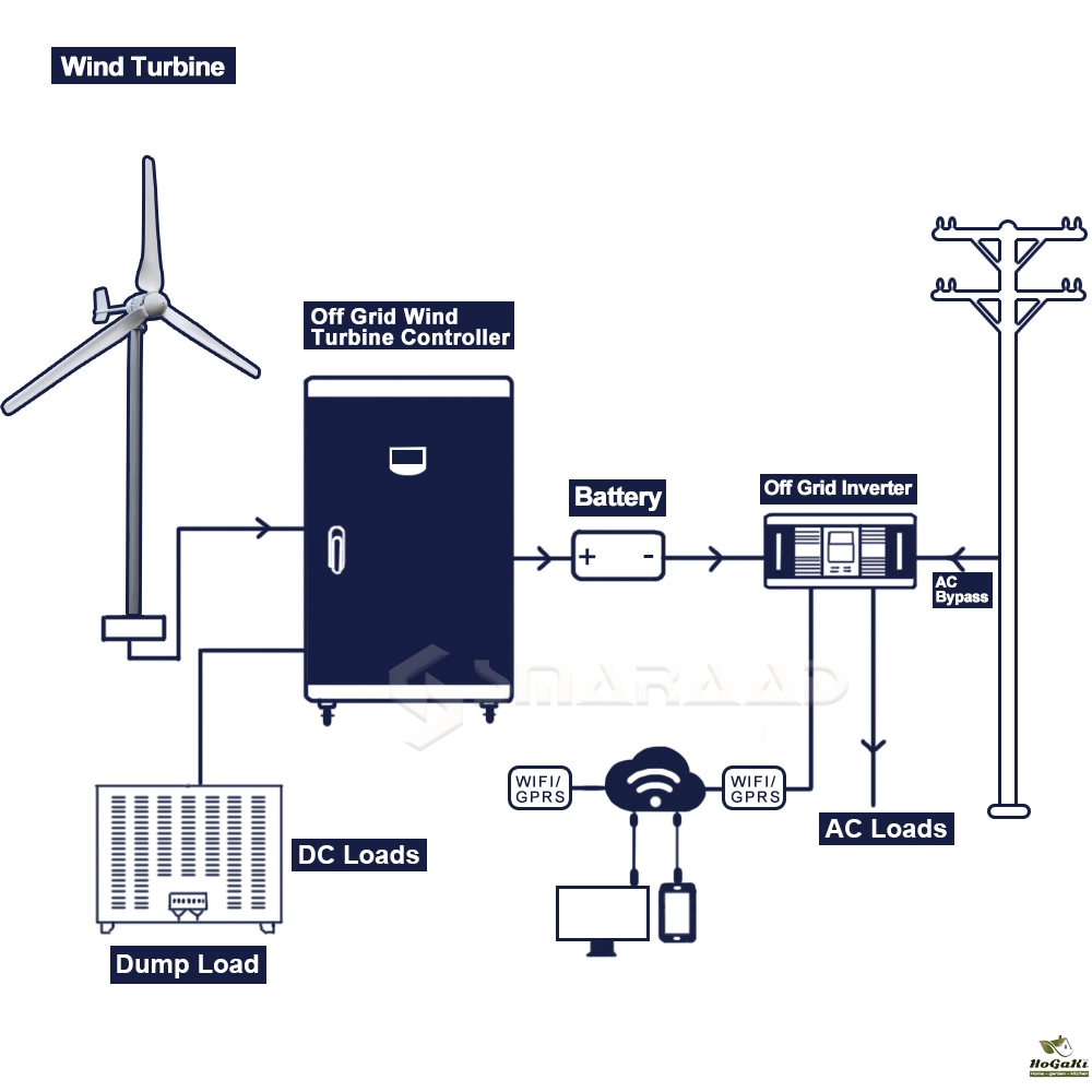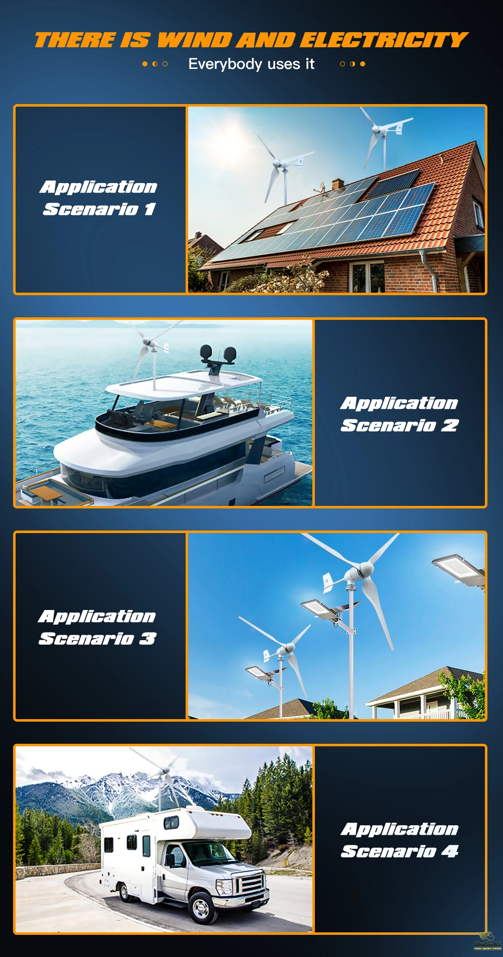 The grid connected system allows the turbine to be directly connected to the power grid, with an output of 110V, 220V, 230V, AC input voltage of 24V, 60V, and no need to connect to the controller. It can directly supply power to households without the need for batteries. WIFI function is optional