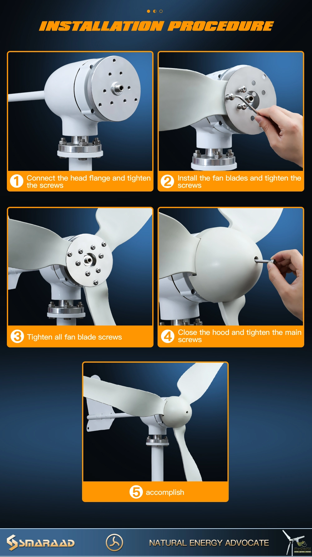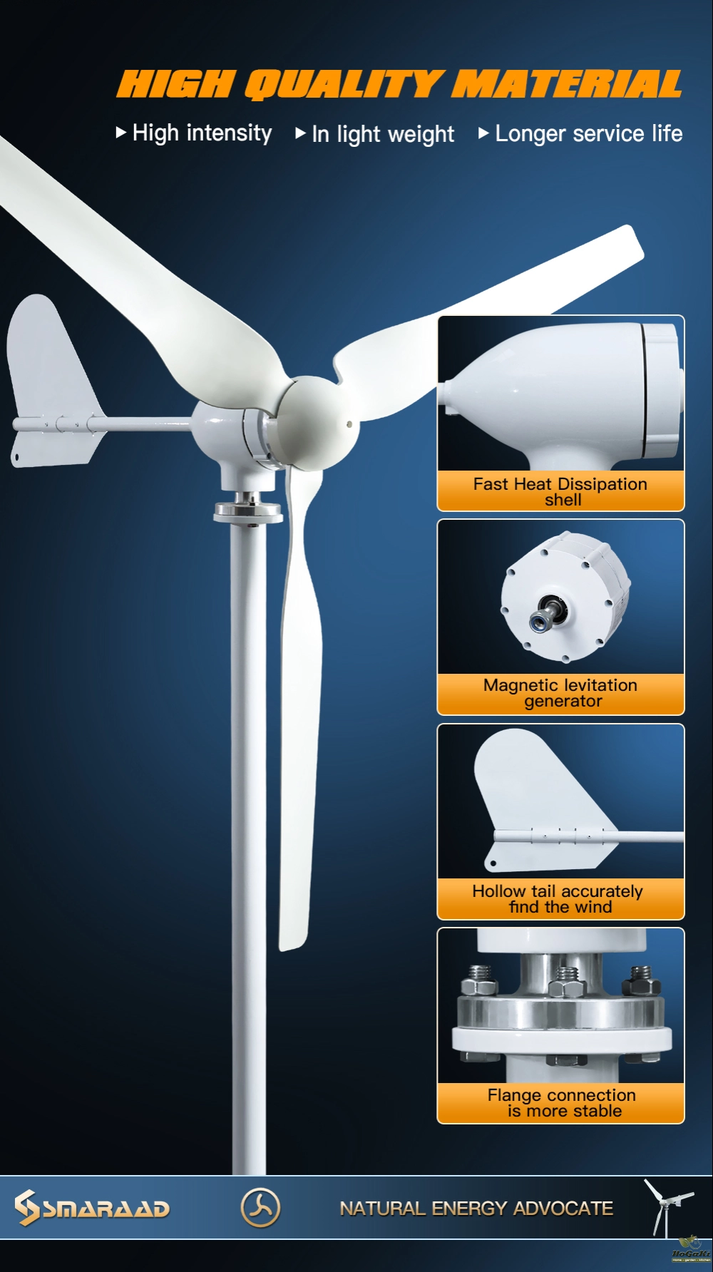 3.Blades using new art of precision injection molding,matched with optimized aerodynamic shape and structure which enhance the wind energy utilization and annual output.