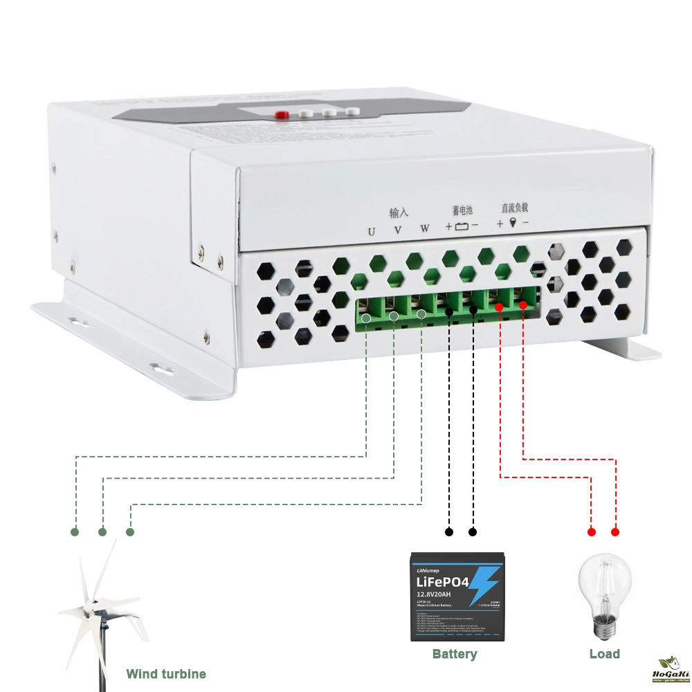The maximum wind power of this hybrid controller is 3500W, and the solar power is 1500W. With a load unloader, if you need to increase the solar power, please consult me