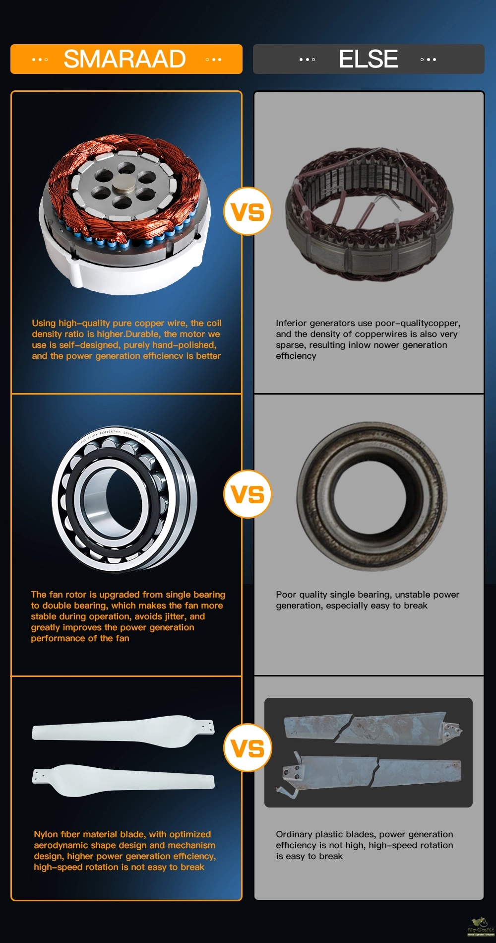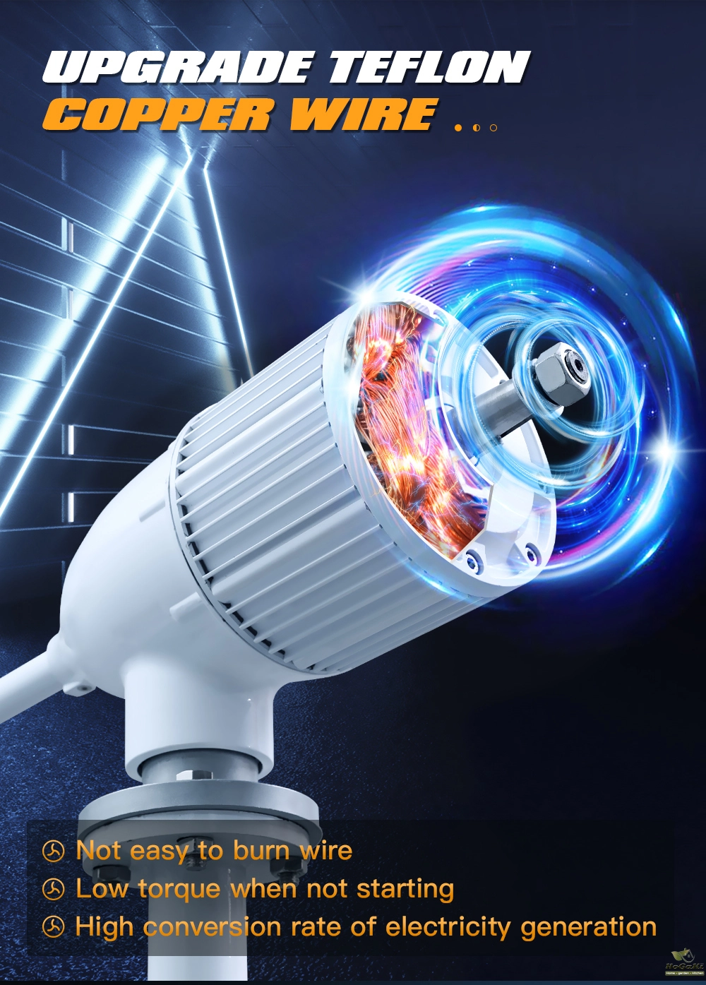 5. The patented permanent magnet AC generator has a dedicated stator that effectively reduces torque, and the combination of the wind turbine and the generator is good, ensuring the performance of the entire system.