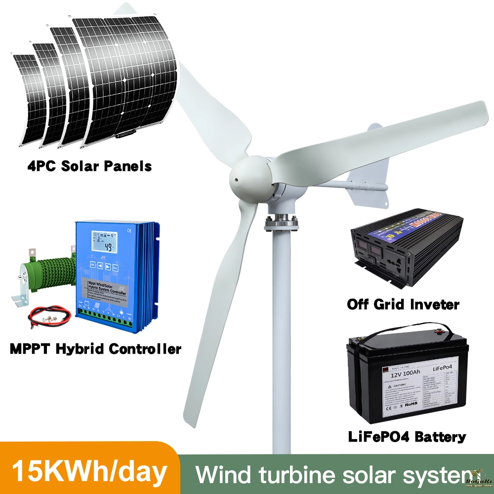 The solar system includes 4PCS 100W 18V flexible solar panels. It can achieve a wind solar complementary system and can be directly connected to the LCD hybrid controller.