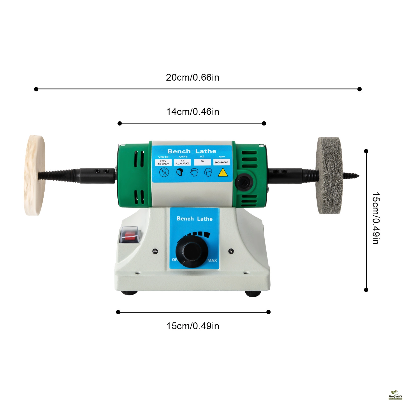 Easy to Install&Use: Two mounting holes on the base facilitate installation on the desktop, ensuring stable operation. Two tapered spindles can be connected to a 0.3In motor shaft and can accommodate muslin or buffing/polishing/grinding wheels with a diameter of up to 4In.