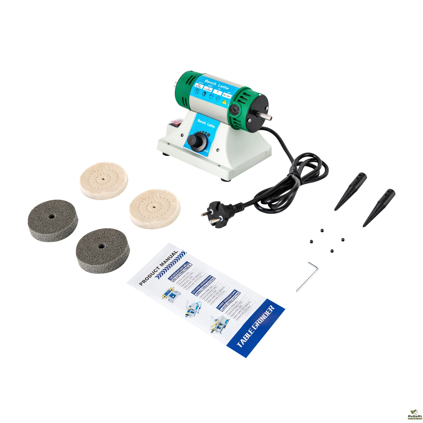 A Professional Polisher: Equipped with a main machine, 2 cloth wheels, 2 fabric wheels, and other essential accessories, it is a professional polisher for polishing, milling, removing rust, and more.