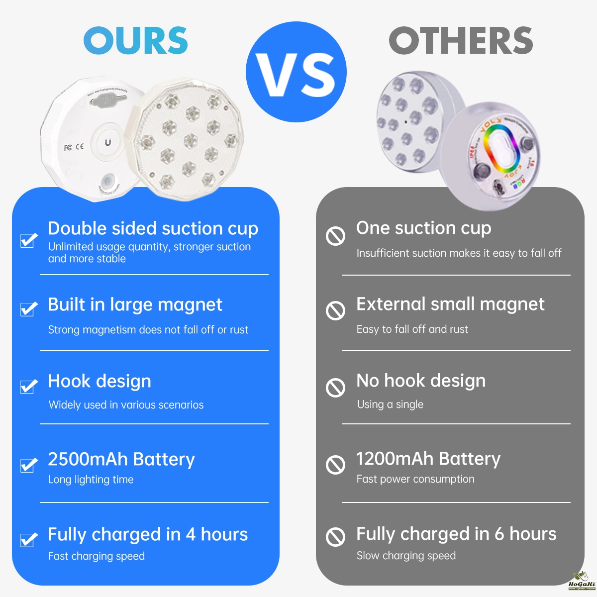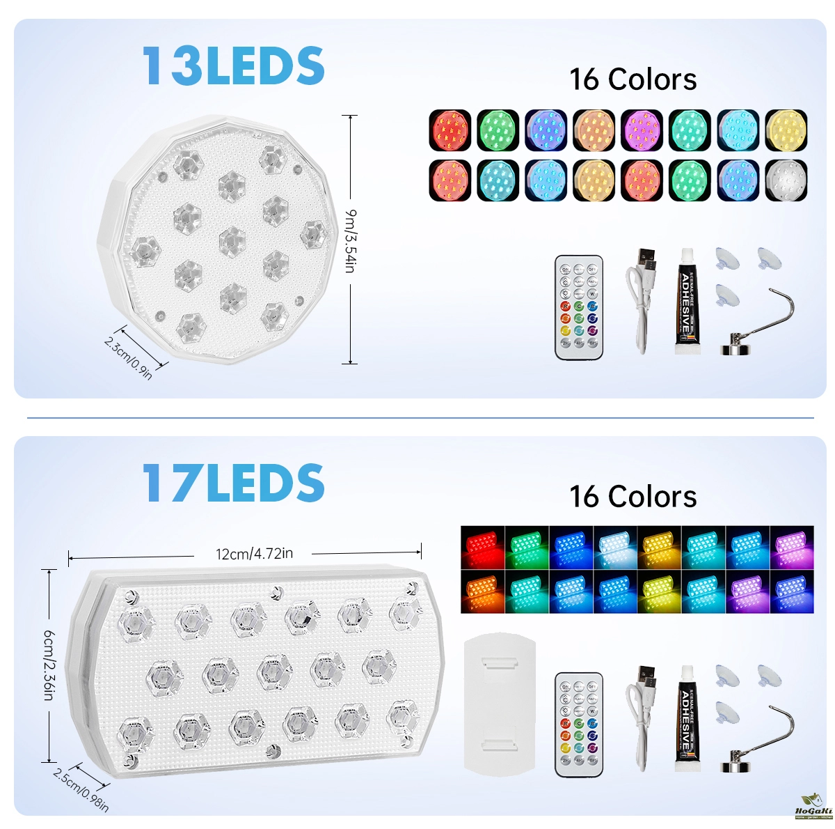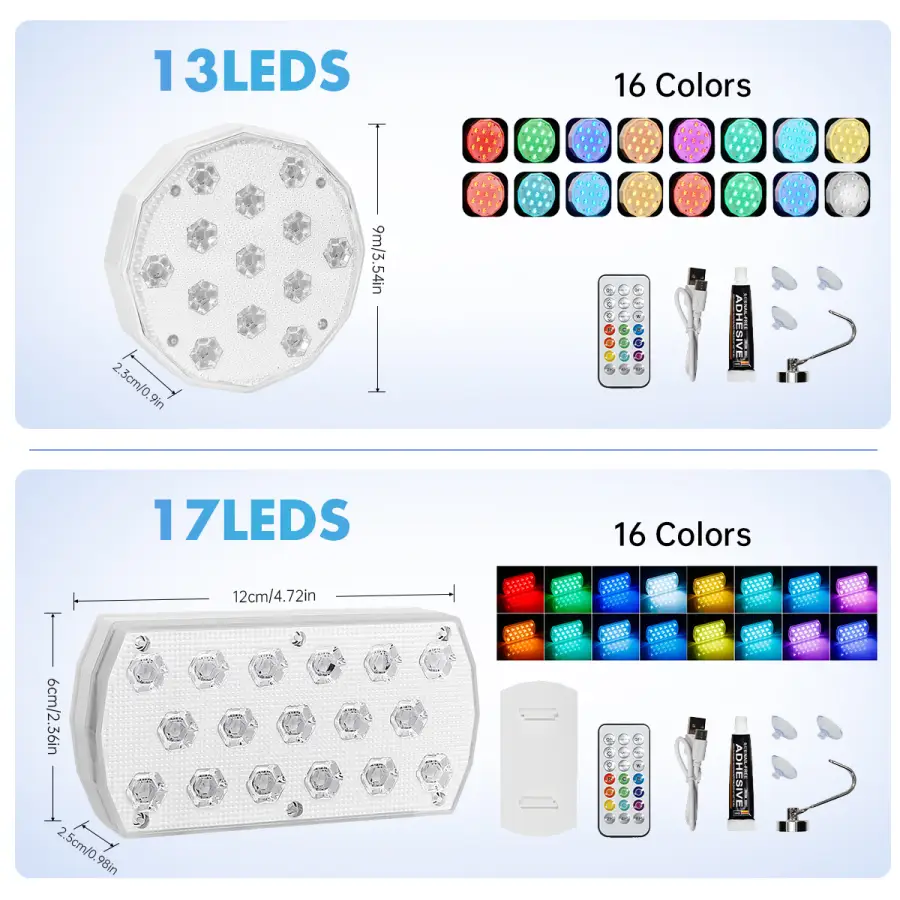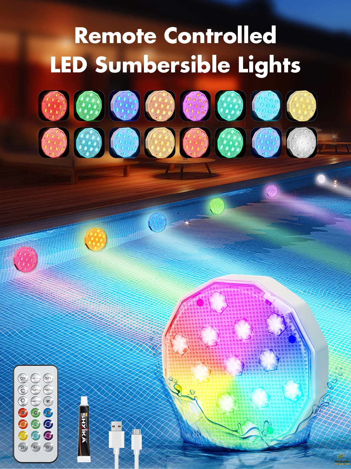 【Suitable for all wall surfaces 】--2024 Newest Underwater Pool Lights use 4 different mounting methods.A Matching professional glue has high strength, both smooth and uneven surfaces are suitable, safe and environmentally friendly.B Built-in super magnets can be easily adsorbed on metal surfaces.C Suction cups can also be used on smooth enough wall surfaces with ease.D Strong magnetic hooks can be used as a night light, closet light, camping light, and hang wherever you want!