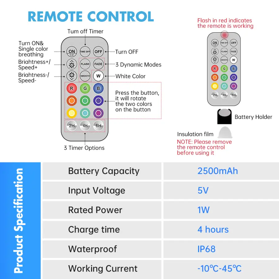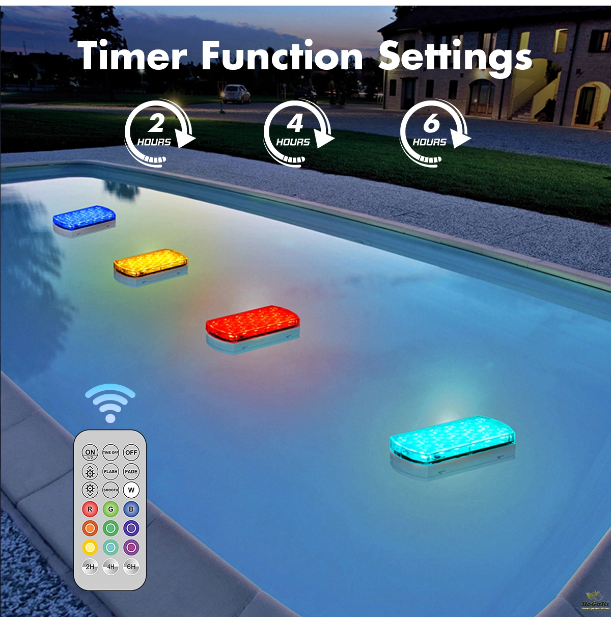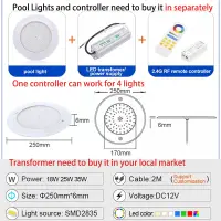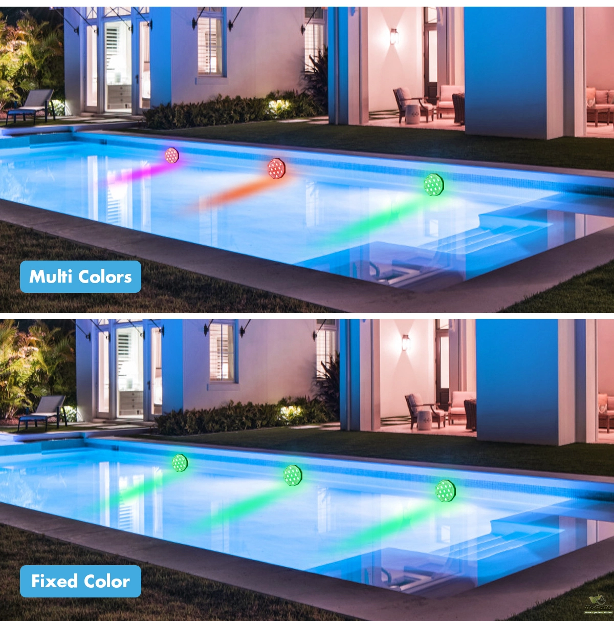 【IP68 Waterproof / Remote Control / Timer】--The pool light is designed with one-piece structure, IP68 is completely waterproof, so you don't have to worry about water leakage. Maximum infrared remote control range is 100 feet (out of water), 16-20 feet (underwater) can go through water and walls, one remote control can control multiple pool lights at the same time, no need to aim the lights, and with timer function, you can choose to run it for 2 hours, 4 hours, 6 hours.