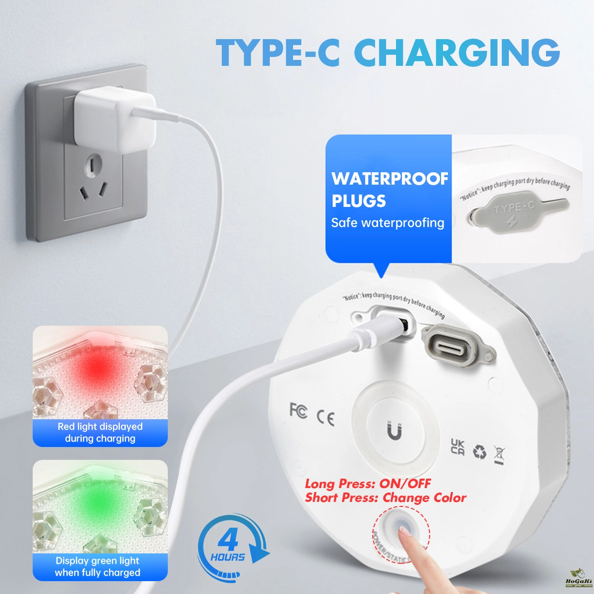 【Bright Rechargeable Pool Lights (2024 Newest) 】-- The submersible pool lights that utilize fast charging technology, can be conveniently charged using a universal USB-C cable. With a large capacity 2500mAh rechargeable battery, these lights can function for 30-90 hours after a full charge of 4 hours. They are five times brighter than other rechargeable submersible lights powered by 1000mAh batteries or standard AA or AAA batteries commonly used in pool lights.