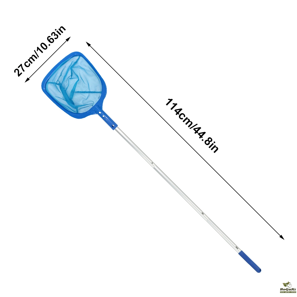 1.Robust Aluminum Pole: Our pool skimmer net features a sturdy aluminum pole with a detachable metal buckle interface. This allows for adjustable length, ensuring you can reach all areas of your pool with ease. Crafted from high-strength aluminum alloy, our pole remains steadfast and stable during use, providing the leverage needed without the worry of wobbling. Specification: Origin: Mainland China Material: Plastic/Aluminum Alloy Size: 3 Rod: 114cmx27cm/44.8x10.63inch 4 Rod: 152x27cm/59.84x10.63inch