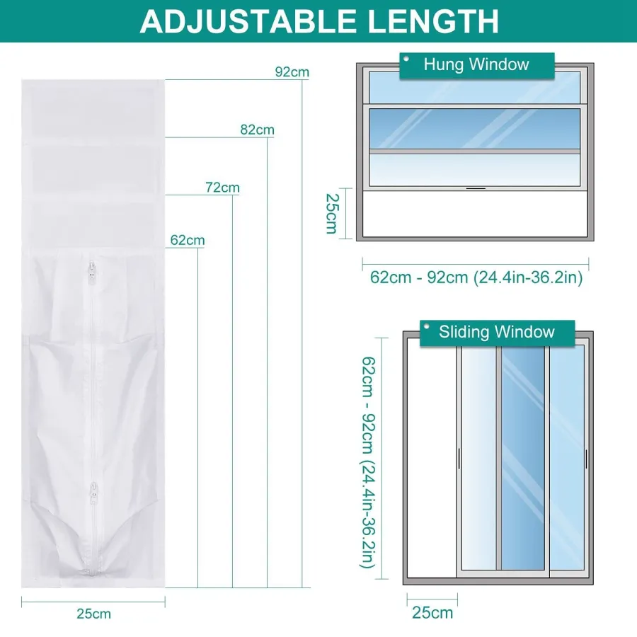 [Adjustable Size]Portable air conditioner adjustable window kit. You can adjust the length according to your needs. Its adjustable range is 35-60inch, suitable for single/double-hung windows of 35-60inch and sliding windows of 35-60inch in height, and suitable for hoses of different sizes.