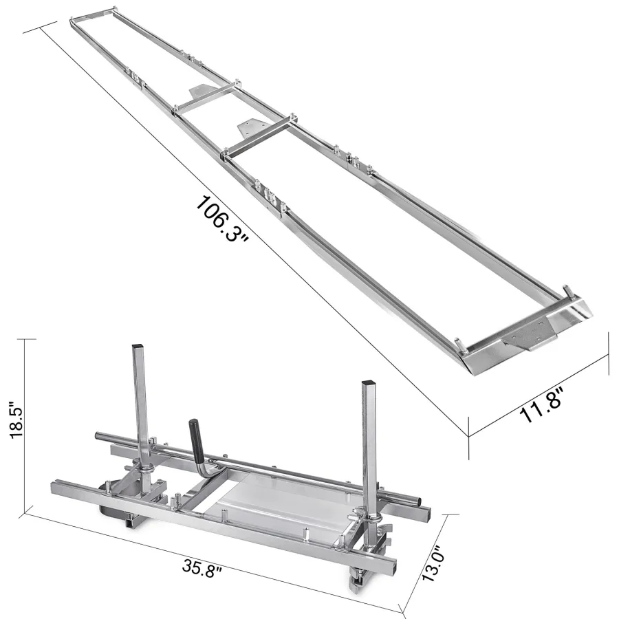 Application: Mill guide, Rails (in.): 108, Rail Material: Aircraft grade aluminum, Works With: saw mill, Dimensions L x W x H (in.): 108 x 10 x 4