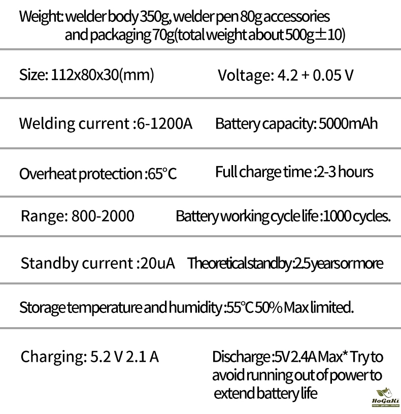 Weight: Welding machine body 350g, welding pen 80g, accessories and packaging 70g (total weight approximately 500g ± 10)