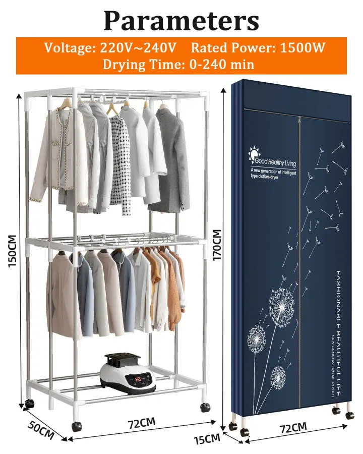 Multifunctional Dryer Electric Clothes Dryer Portable Compact Foldable Laundry Dryer Machine with Dryer Bag and Time Setting