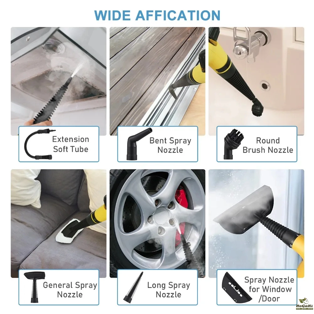 3. Versatility: This handheld high-pressure steam cleaner is an integrated cleaning solution suitable for indoor and outdoor use. Even the most stubborn dirt, such as cement, grease, and stains, can be easily and quickly removed. We also offer extended nozzles to enhance mobility and expand cleaning range!