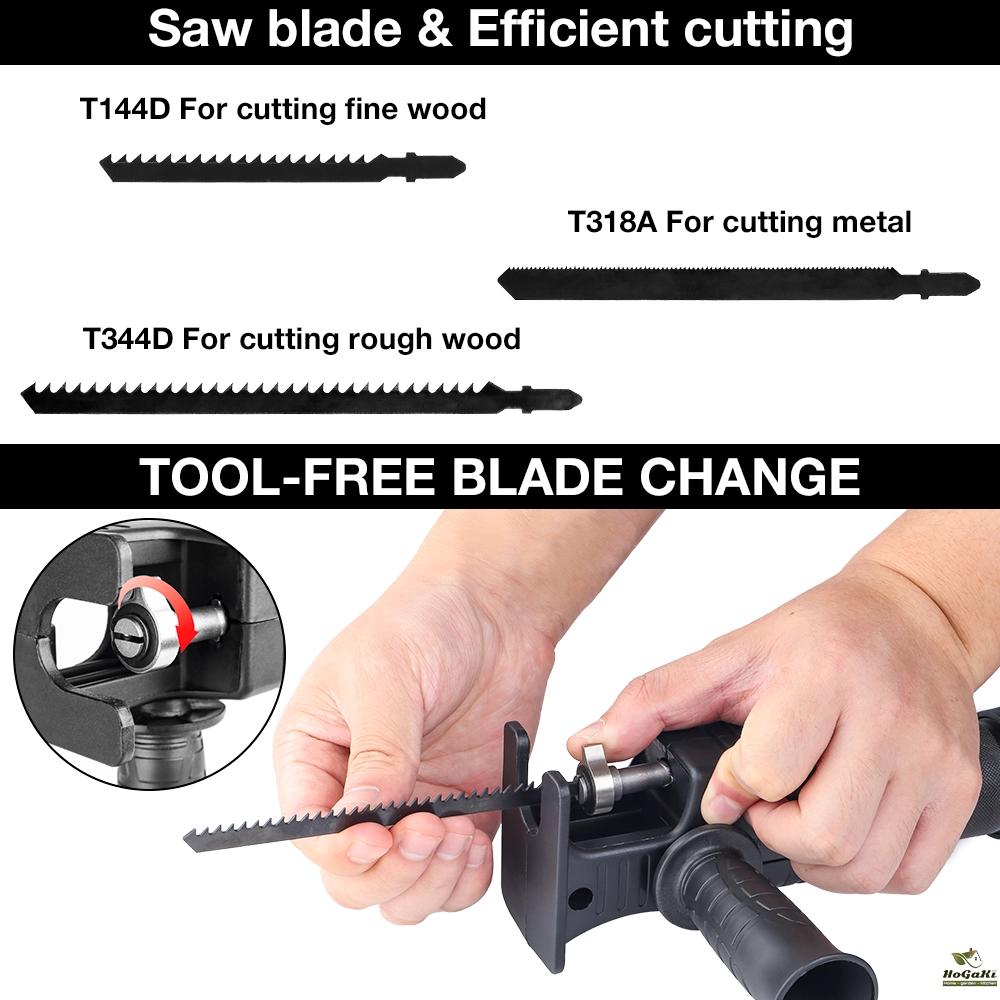 【Ergonomic Handle】The portable reciprocating saw adapter has ergonomic handle, comfortable to hold, safe to carry, suitable for wood and metal cutting.