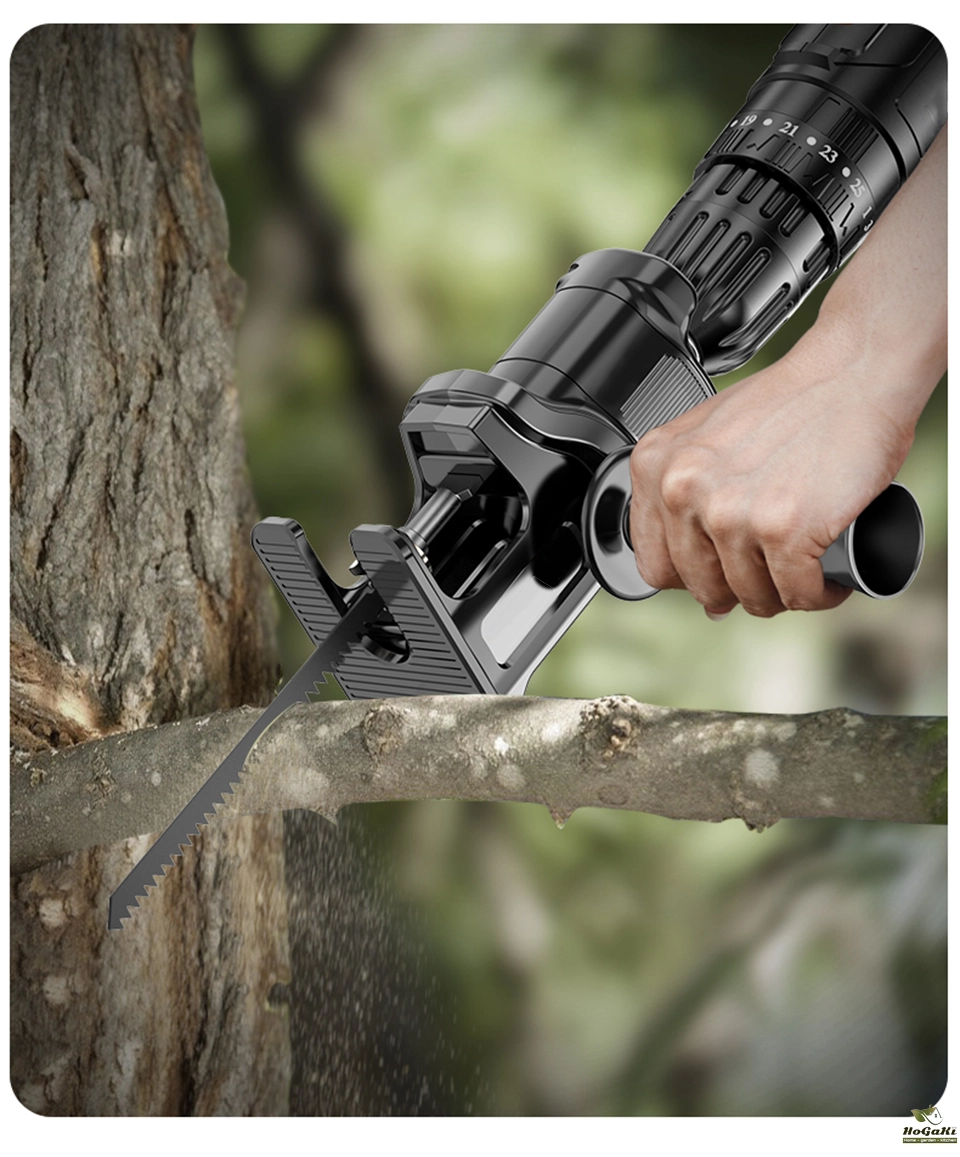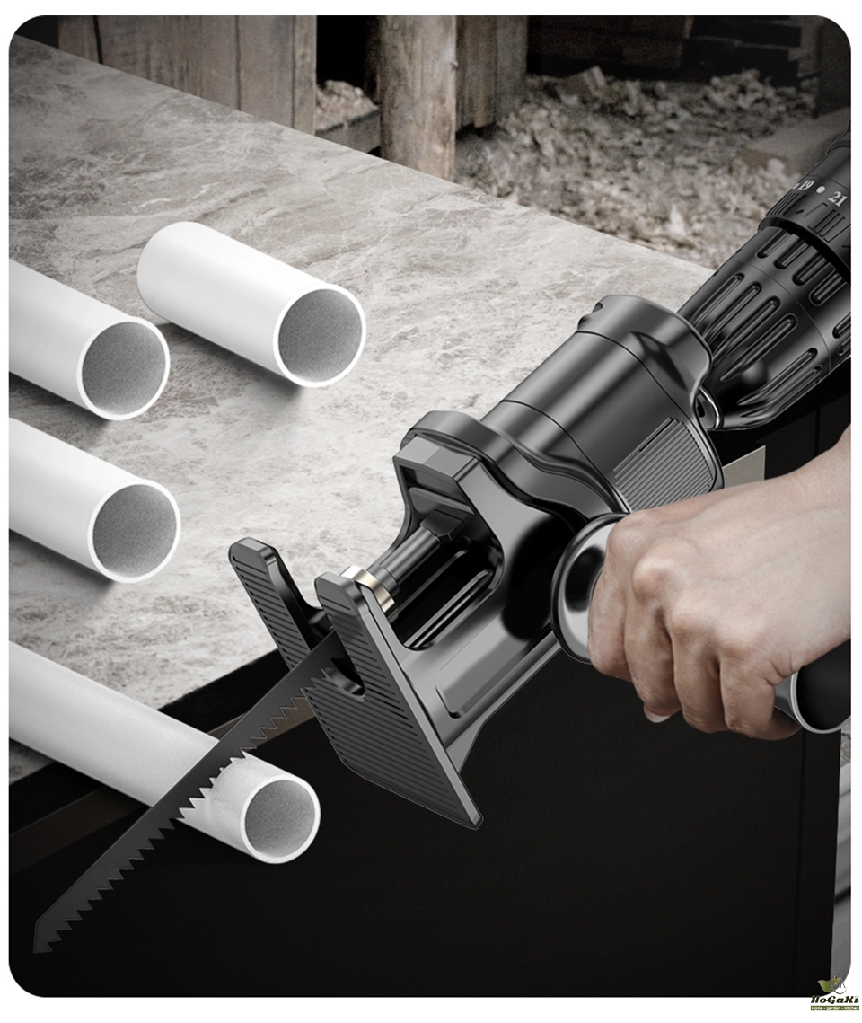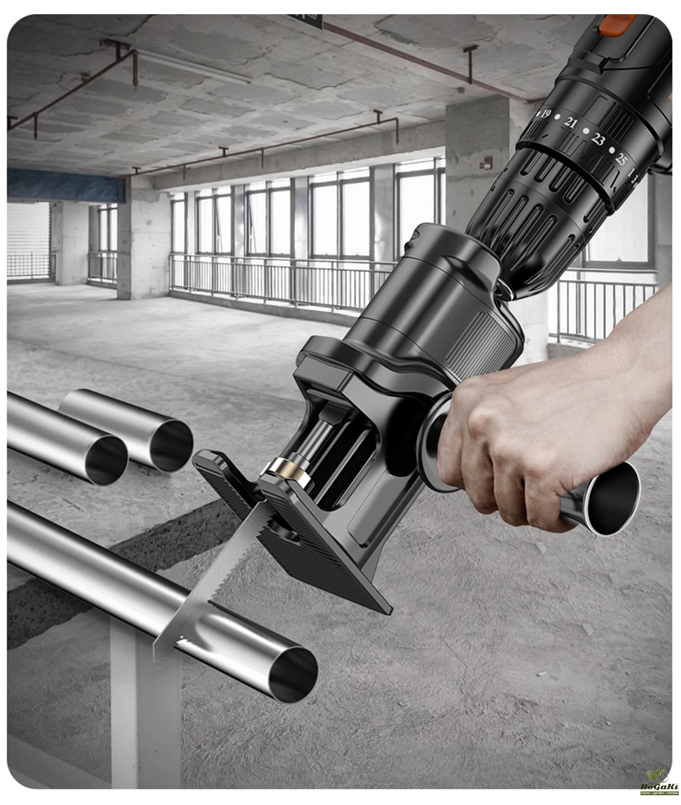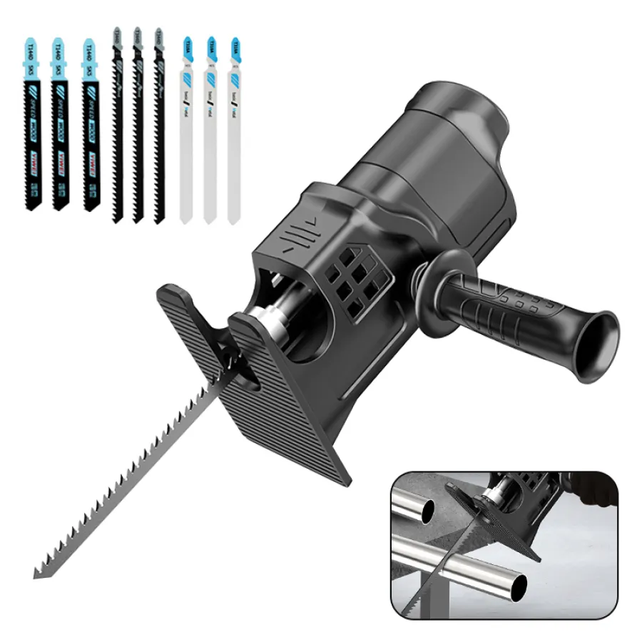 The protable reciprocating saw adapter has ergonomic handle, comfortable to hold, safe to carry, suitable for wood and metal cutting.