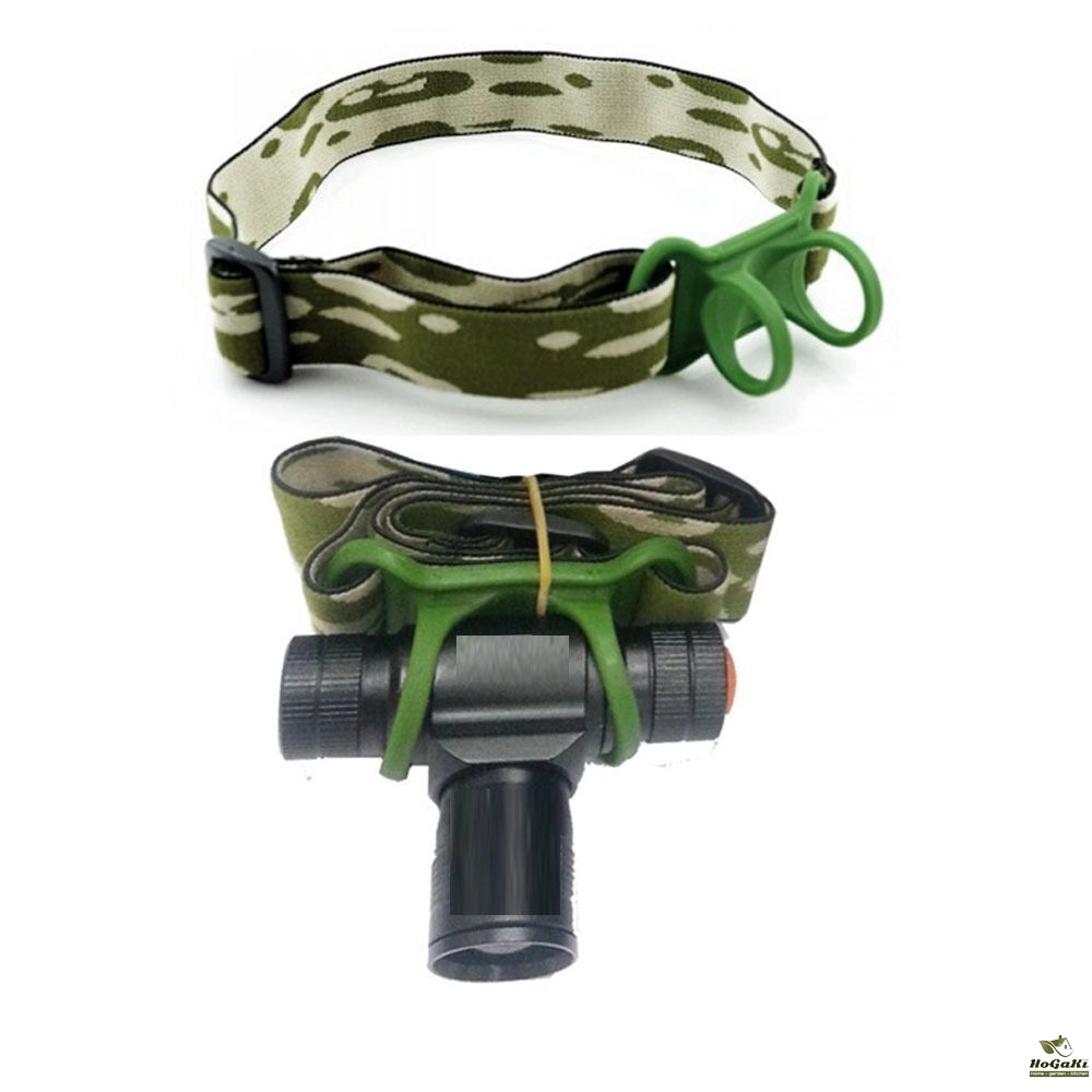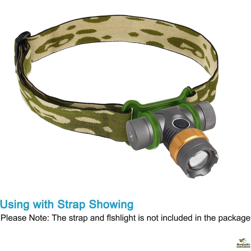 Place the flashlight in the ring of the bracket, connect the headband to the small holes at both ends, and then wear it on the head.