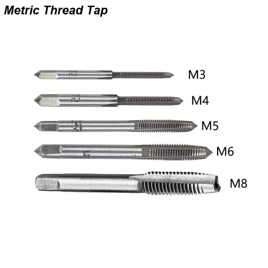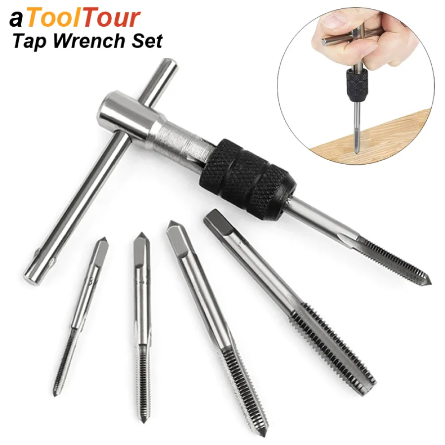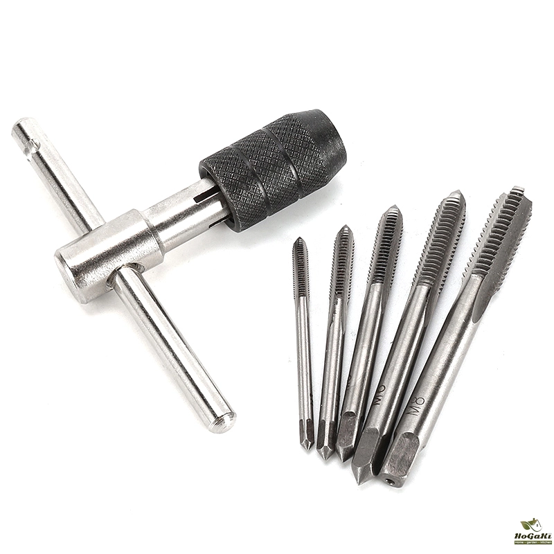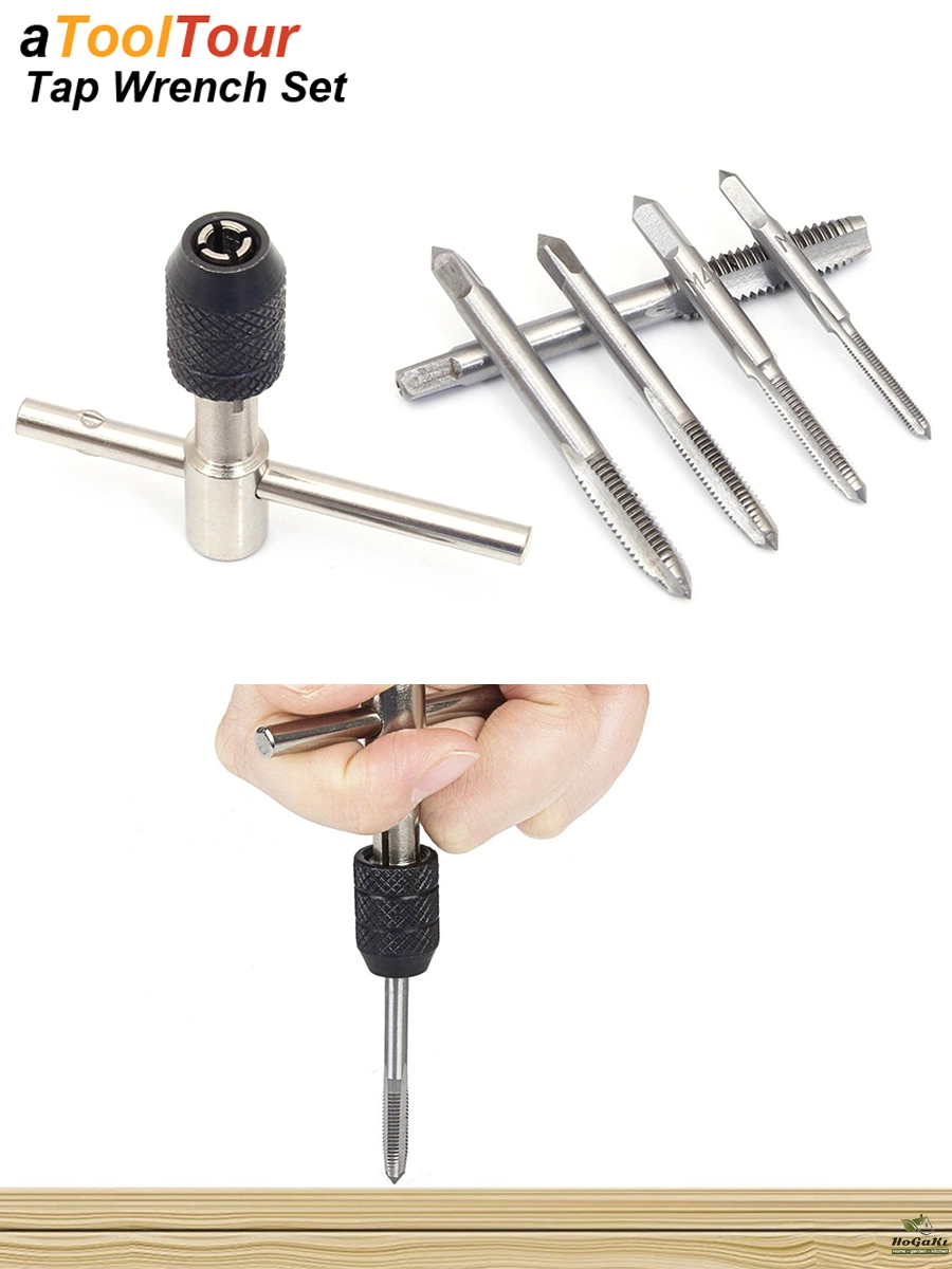 Set Include: 1 x Tap holder wrench, 5 x Metric taps set, includeing M3×0.5mm, M4×0.7mm, M5×0.8mm, M6×1mm, M8×1.25mm taps.