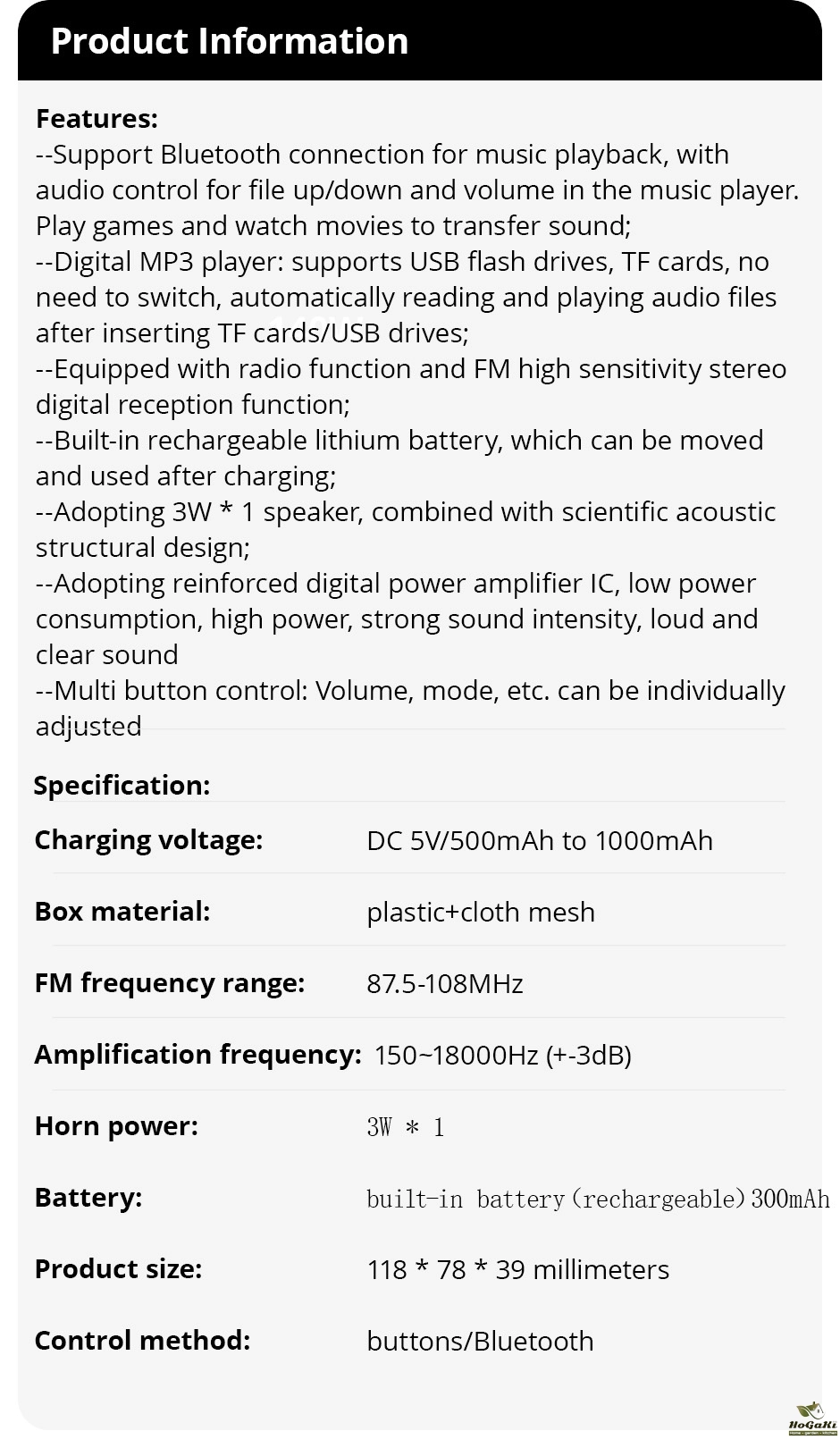 • Supports TF Card and Mobile Phone :The speaker supports TF cards and mobile phones, offering multiple ways to play your favorite tunes.