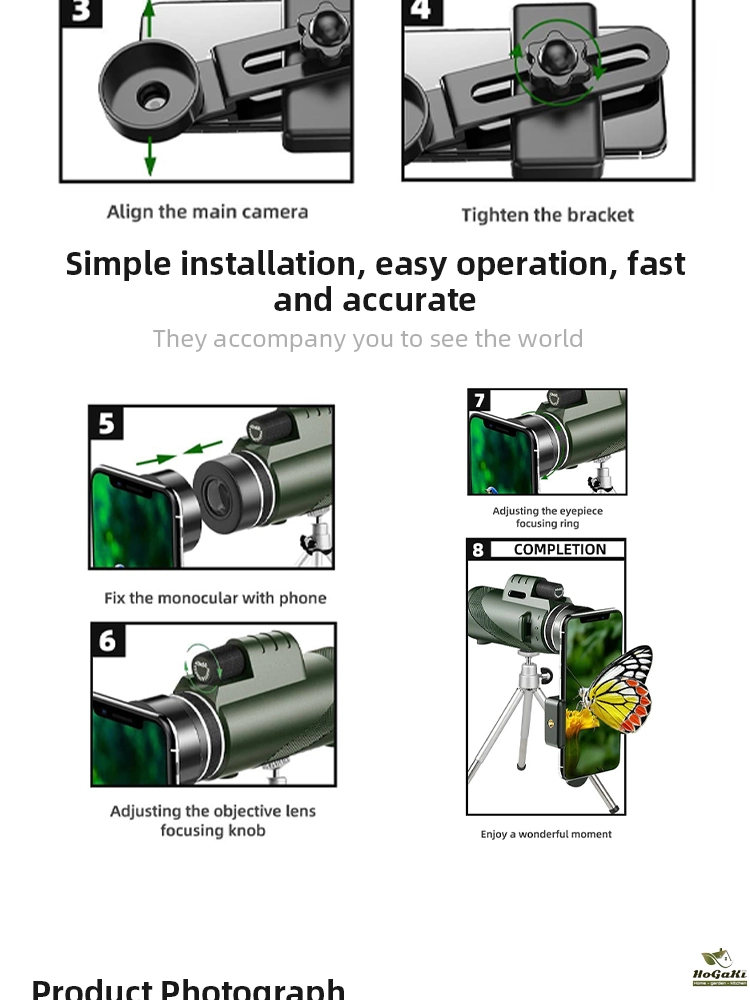 * Come with a phone adapter, that enables you to take photos&videos to record the shocking moments.