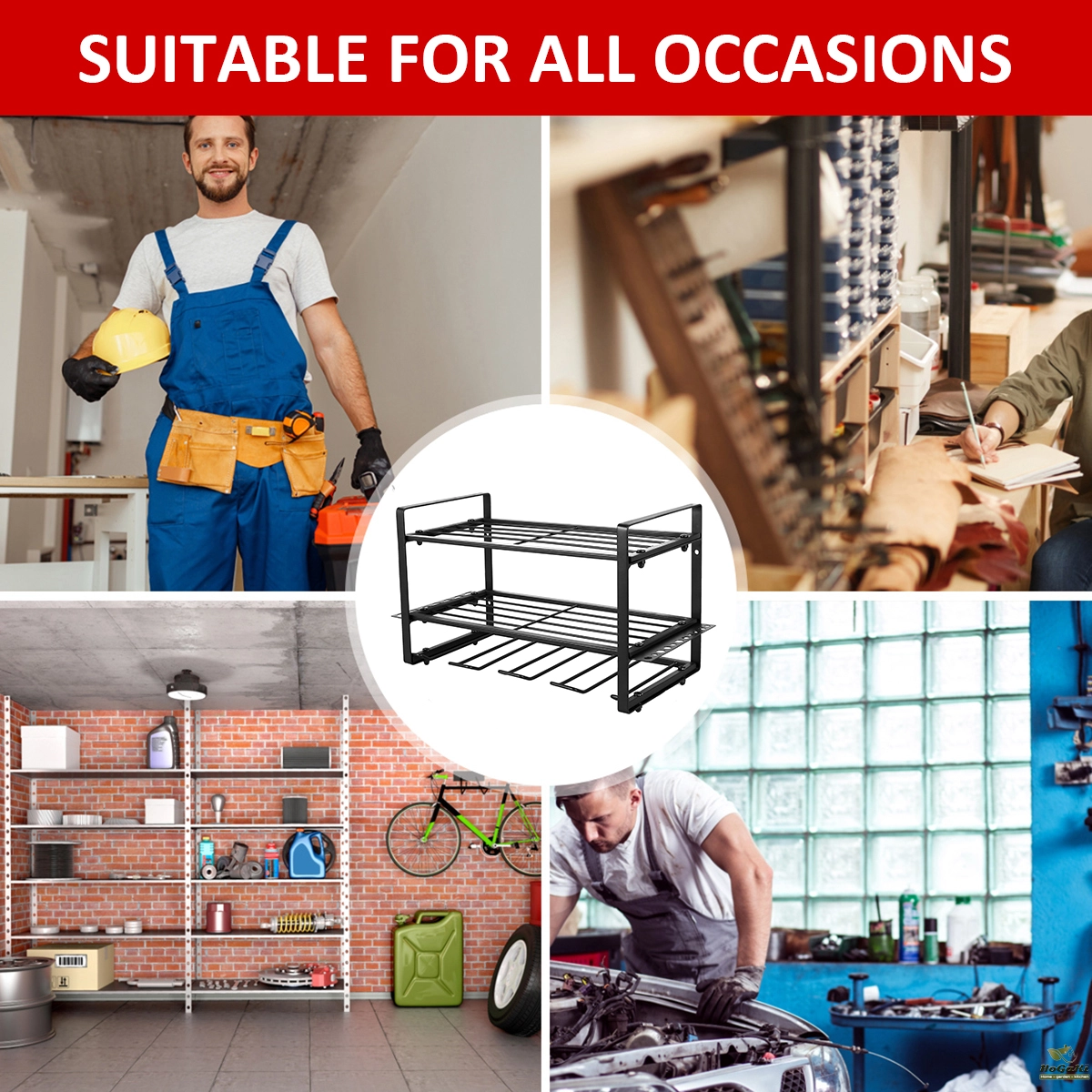 Our Power Tool Storage Racks are heavy duty, metal material is sturdy and durable, not easy to slip off, more secure.
