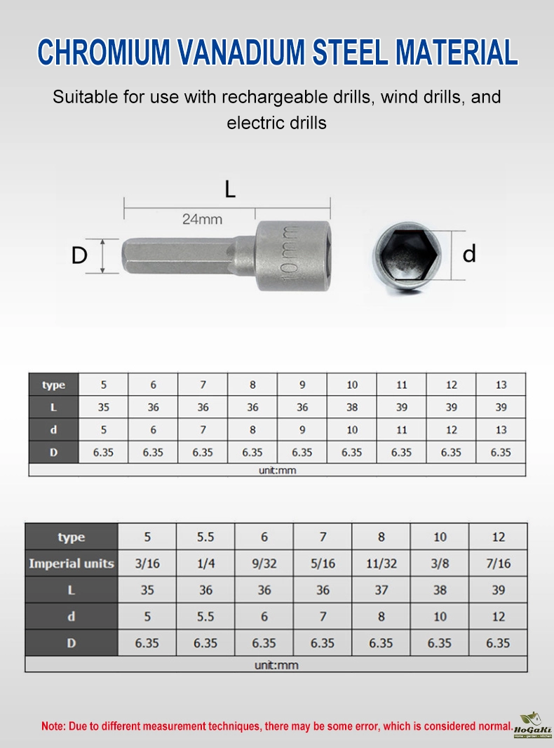 • Powerful Socket :The hexagonal wrench socket is made of chromium-vanadium steel, making it strong and durable.
