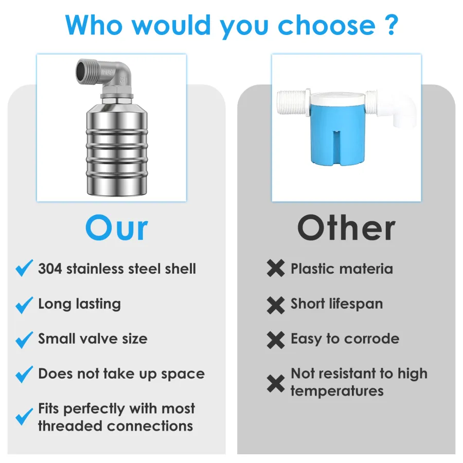 [Fully Automatic Control Water Level] When the water level is lower than the valve level, it will automatically fill your water tank with water. It automatically stops filling once it reaches the valve, so it closes when water reaches the internal float.