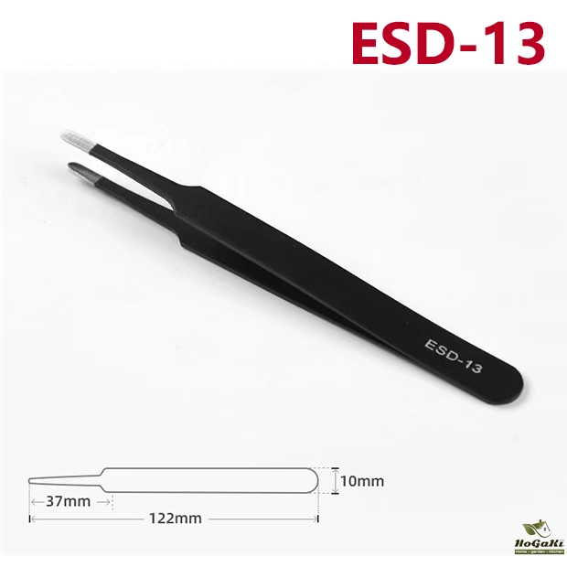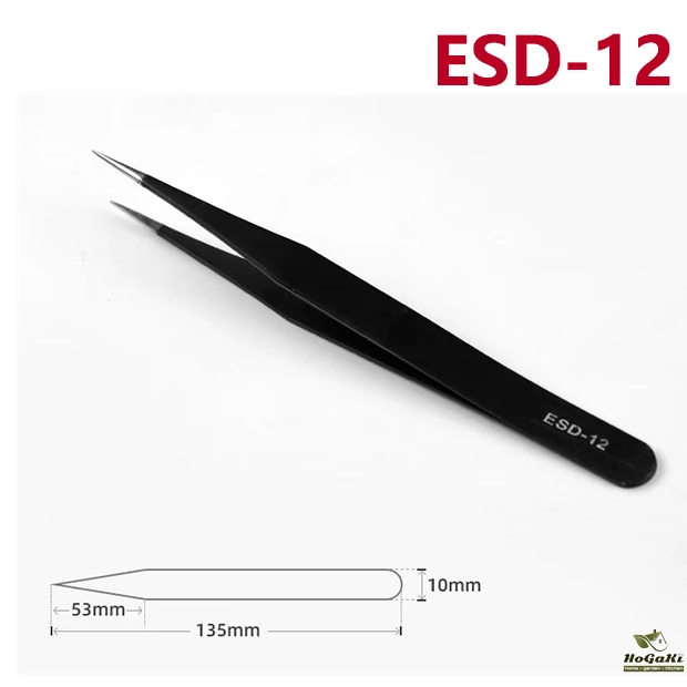 ESD-12: When this pair of tweezers is used to forcefully clamp circuit boards, the tweezers will not bend and the components will not fall off.