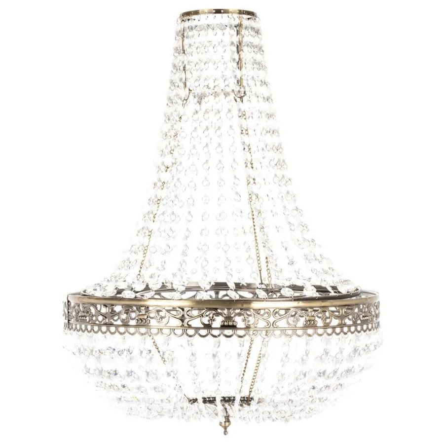 Reminiscent of ornate regal style, the Charlotte Pendant cascades from the ceiling in rows of clear crystals, supporting a central filigree circle in antique brass. Glistening spectacularly as the light refracts of each jewel, this elegant chandelier will turn any light fitting into a breathtaking focal point.