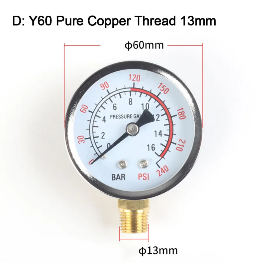 *Pressure:Y60, 0-1.6Mpa, 0-230PSI