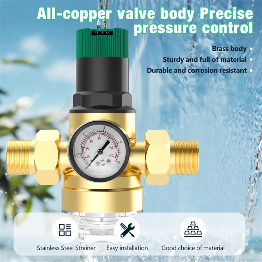 Constructed from High-quality materials to ensure a robust and long lasting pressure regulator. This material is wear-resistant and rust-resistant, meaning it provides optimal strength and durability. Make a wise investment that will endure for years and offer reliable water regulation when you need it. Enhance water regulation with our precise water pressure gauge. This feature accurately monitors the pressure value, providing full control over the water pressure. Easy-to-read gauge ensures you maintain the desired water flow so you can avoid damaging your pipes or appliances with high pressure. Apart from controlling water flow, the regulator also cleans water through a stainless steel screen filter. By retaining impurities, this feature ensures better water quality for your use. The easy assembly feature of our product allows you to promptly install and have it up and running with no hassle. Built for versatility, this pressure regulator is perfect for a myriad of applications. Tips the scales on hydraulic instability, manages your water purifier, regulates your solar energy water heater or tap water and more. Essential tool for any home or industry wanting to maintain optimal water flow. Material: Metal colour: As Shown Package Contents: 1 x water pressure regulator Only the above package content, other products are not included. Note: Light reflection and different displays may cause the color of the item in the picture a little different from the real thing. The measurement allowed error is +/- 1-3cm.
