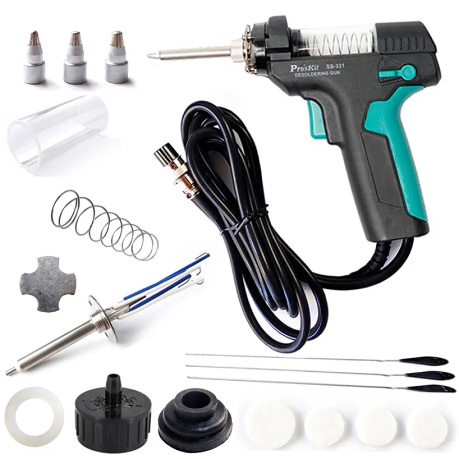 Pro'sKit SS-331H Electric Desoldering Station Tin Gun Suction Tin Pump Accessories Filter Pipe Nozzle Heater Needle Mat Spring