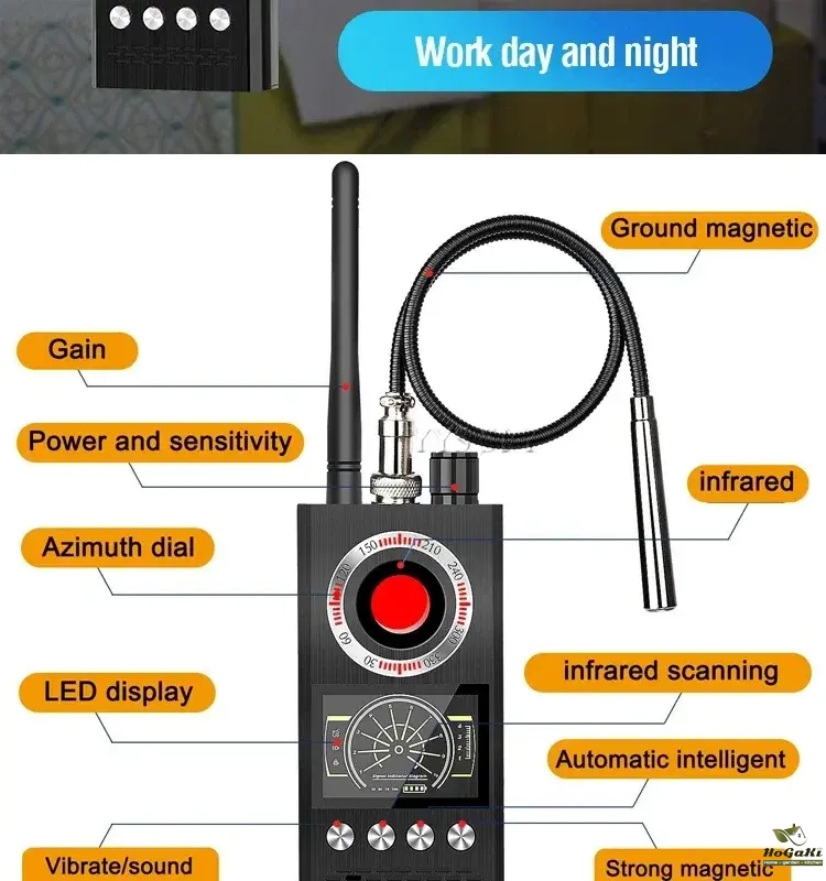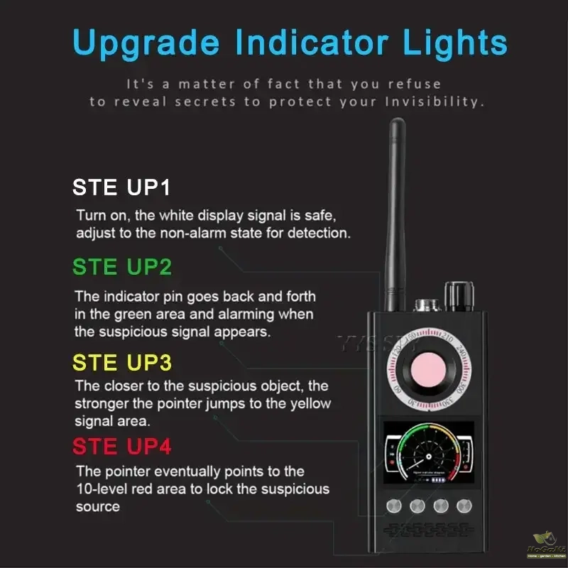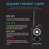 【Upgrade military quality】Using advanced chips,The improved one is easy to operate and portable. Stronger anti-jamming and wider range of detection frequency.this product has modes of laser scanning, RF wireless signal detection, magnetic field signal detection and so on. With high sensitivity and strong anti-interference ability, it can accurately detect various eavesdroppers, GPS locators, trackers, 1.2G~6.5G wireless camera, 2G/3G/4G signal from SIM card bug and other equipment.