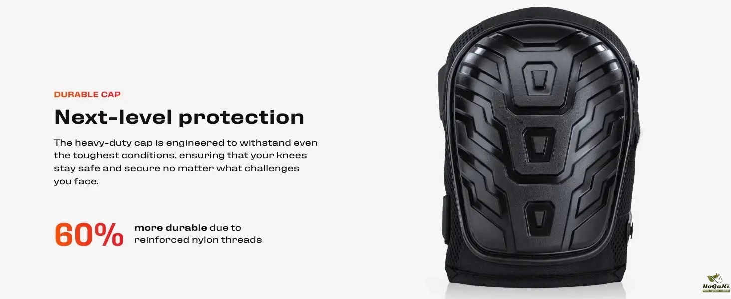 KEEPS KNEES SAFE & COMFY: Our gel construction knee pads are designed to provide your knees with the extra protection they need to keep them safe. Using a heavy-duty thick poly shield, our work knee pads prot ect your knees from cuts and scrapes so that you can work comfortably for longer!