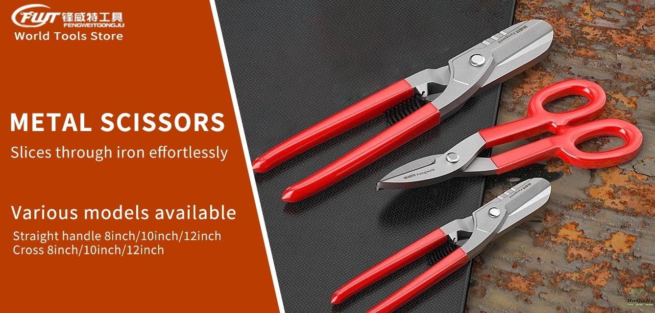 Available in 8-inch, 10-inch, and 12-inch sizes, these tin snips feature straight-edged flat blades with a red handle and rubber grip for added comfort and control during use.