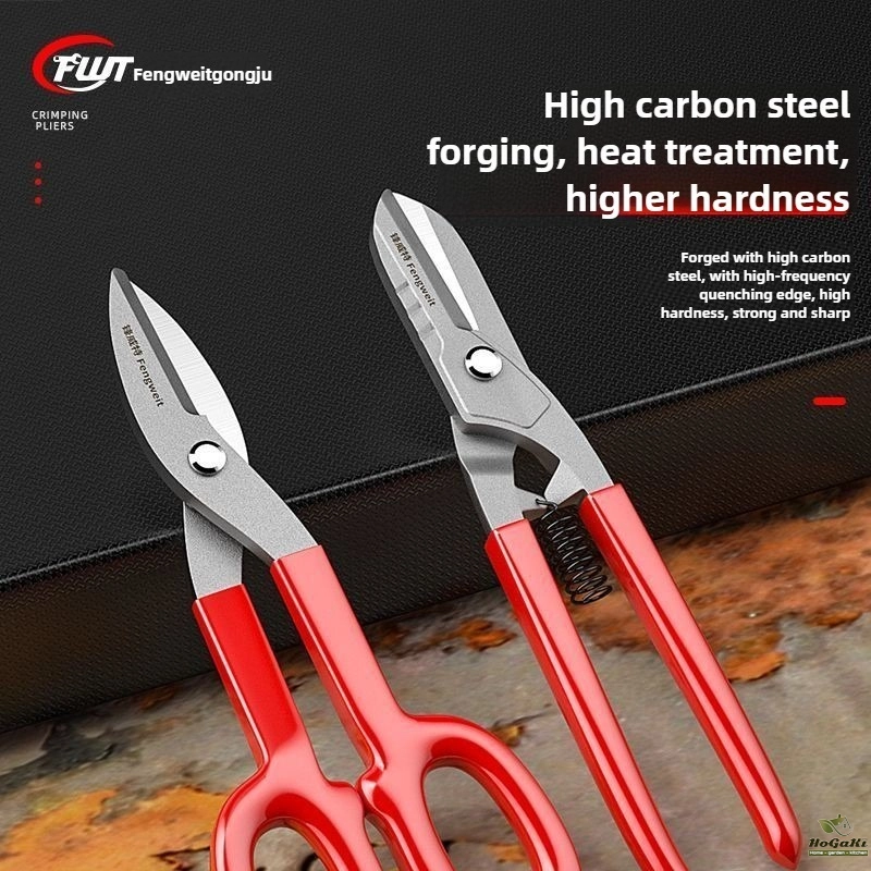 Crafted from forged high-carbon steel with a sandblasted finish, the scissors undergo heat treatment to ensure superior strength and durability. Capable of cutting 20-gauge cold-rolled steel and 22-gauge stainless steel effortlessly.