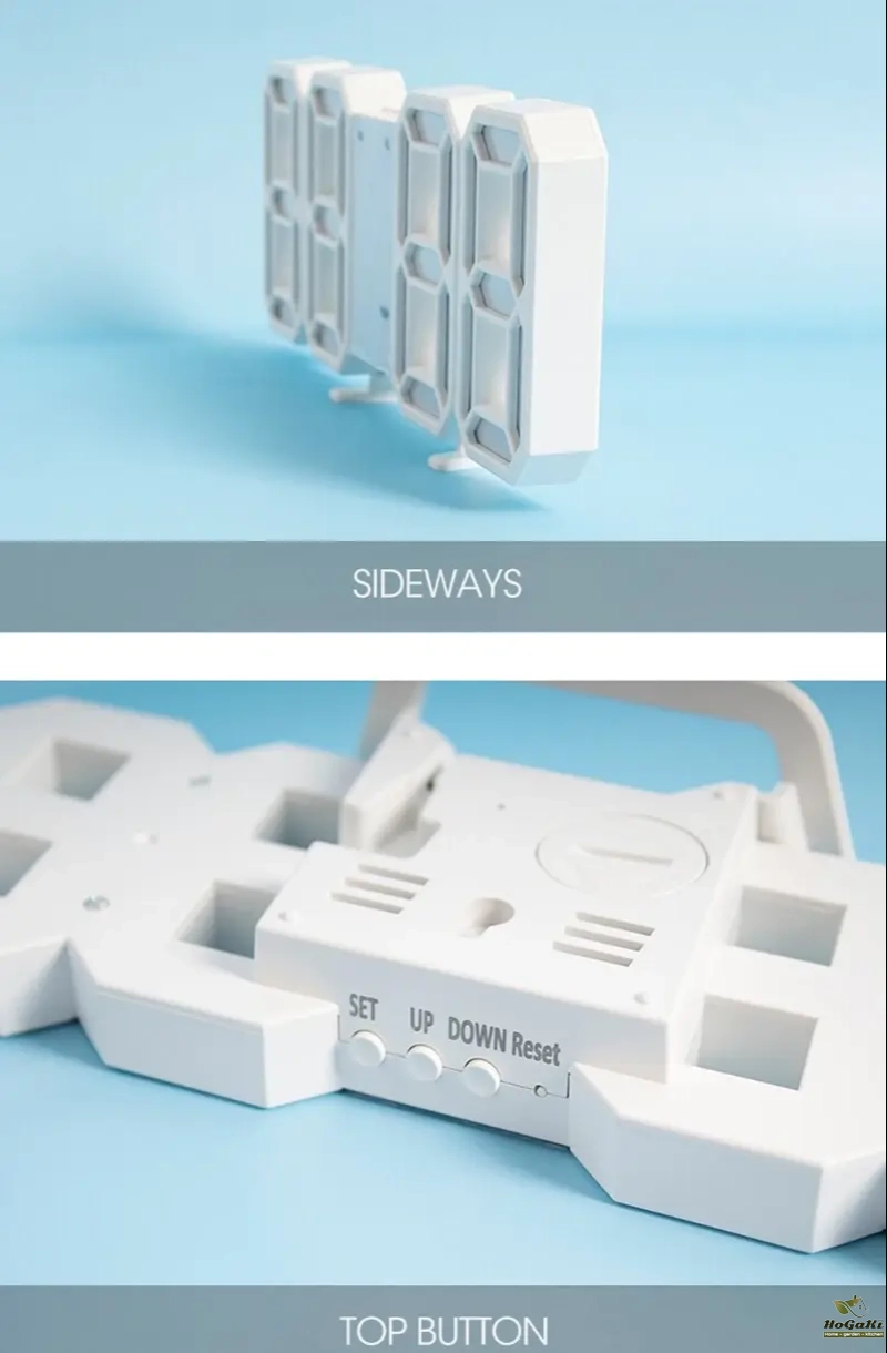 [Wall clock / desktop clock] A beautiful and fashionable digital clock that can also be used as a wall clock or desktop clock. It can be placed in various scenes such as living room, bedroom, office, desk, dining table, TV cabinet, etc. it has notches on the back for mounting, stand is removable, can be easily hung on the wall as a wall clock, or place it on the desktop arbitrarily.