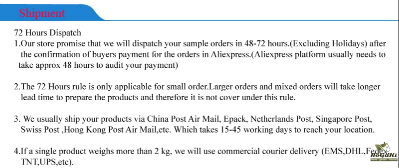 Packages from our warehouse in China will be shipped by ePacket or EMS depending on the weight and size of the product. Packages shipped from our US warehouse are shipped through USPS.