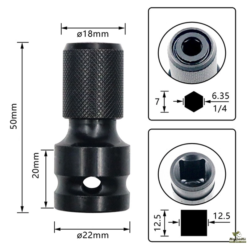 - Quick Release & Security Lock Design: 1/2 Inch Square Female to 1/4 Inch Hex Female Socket Adapter