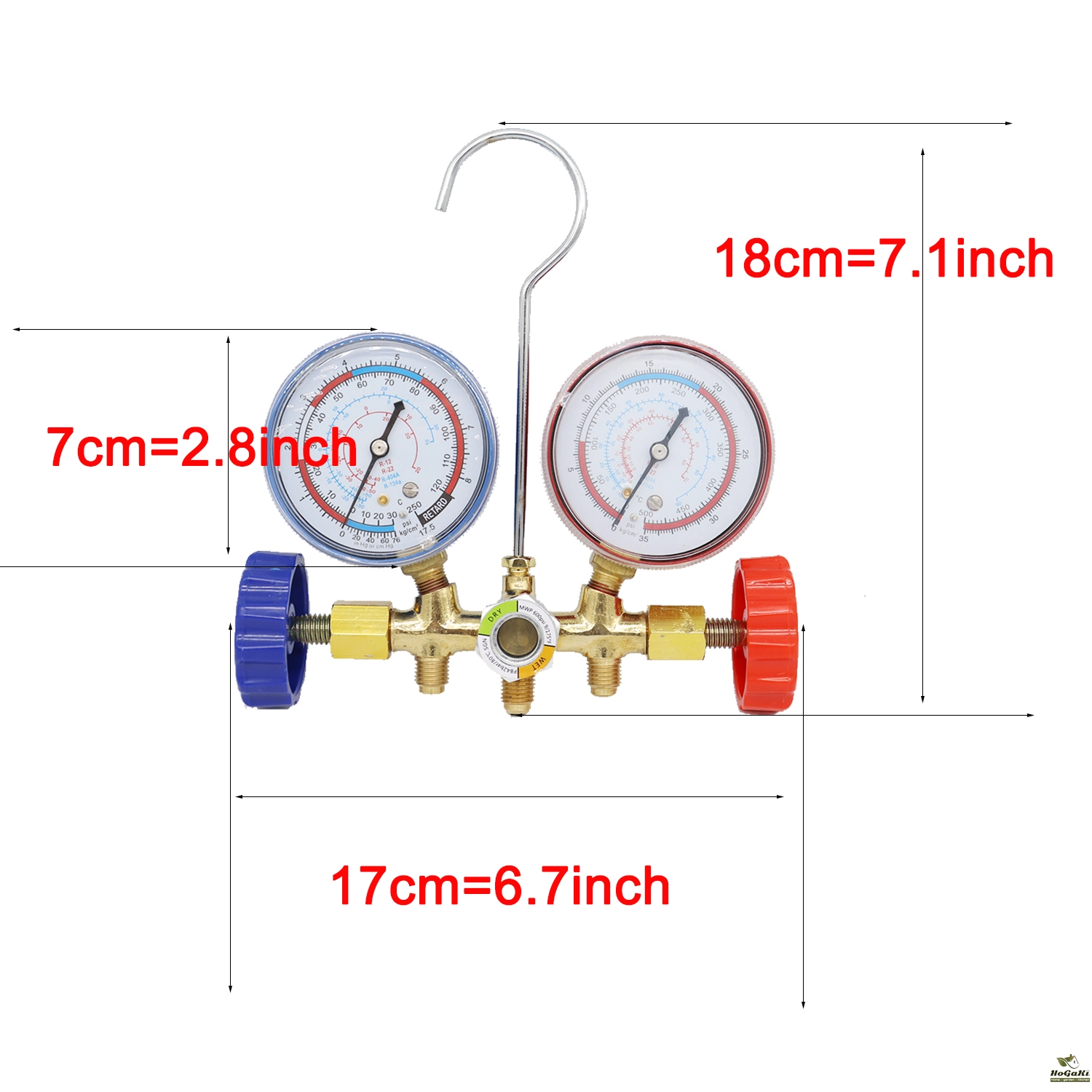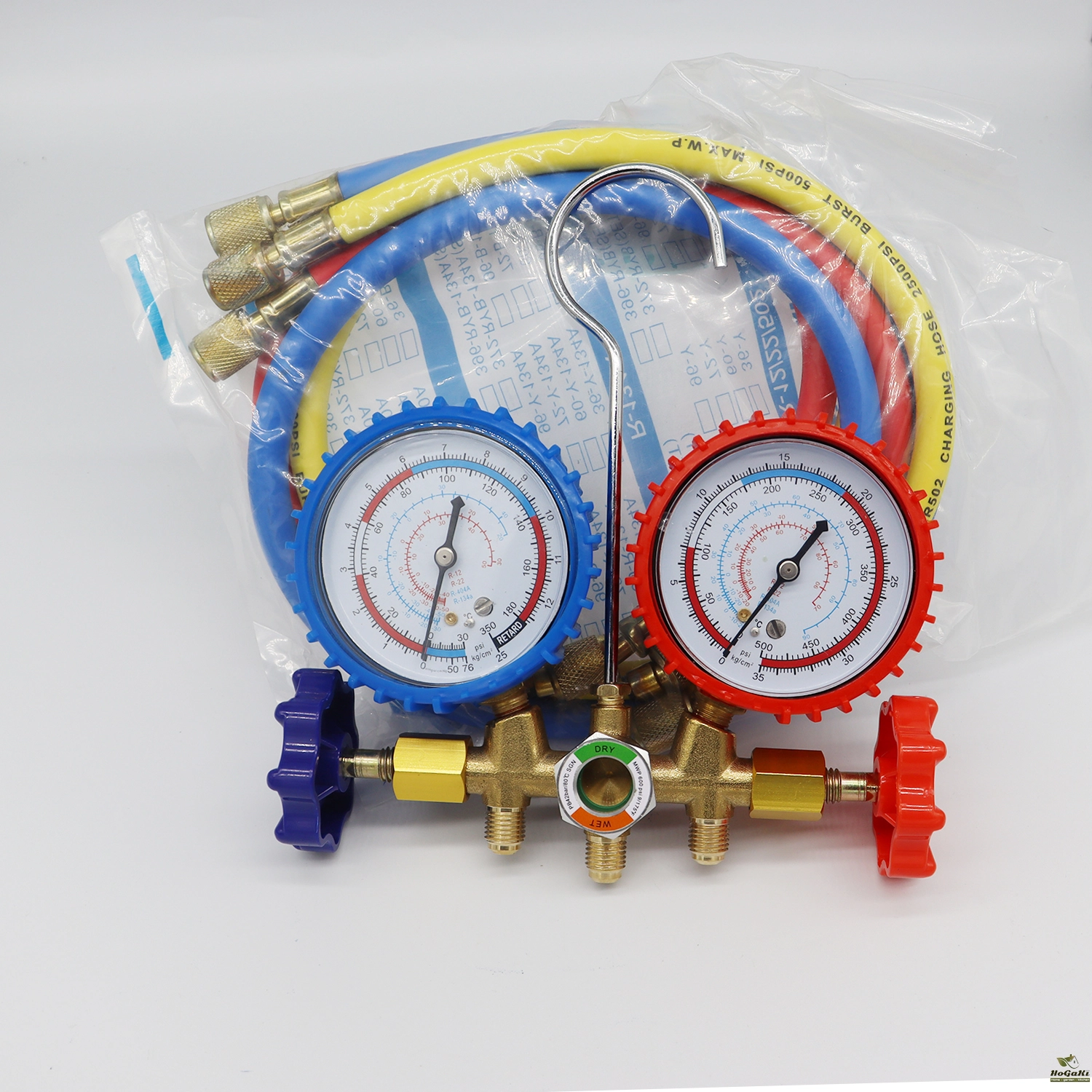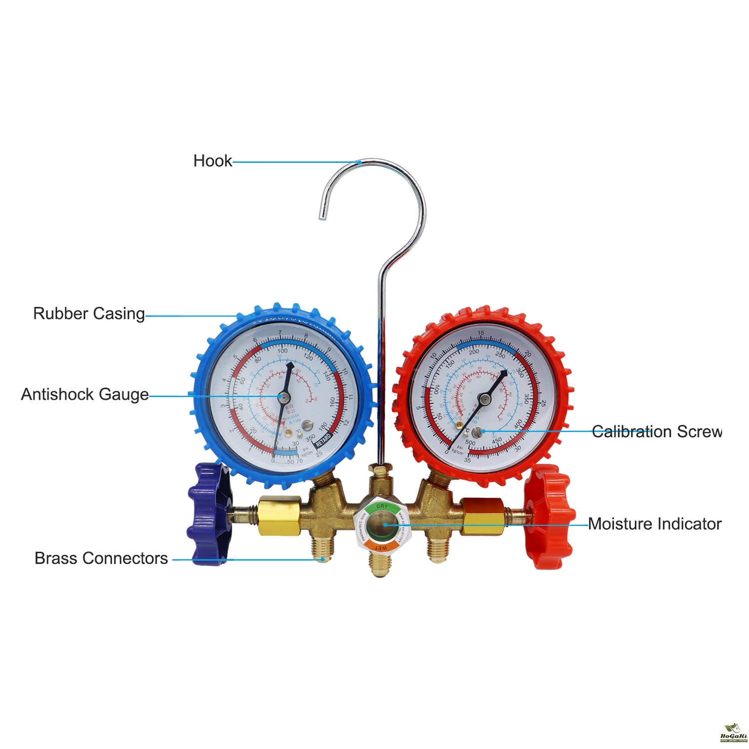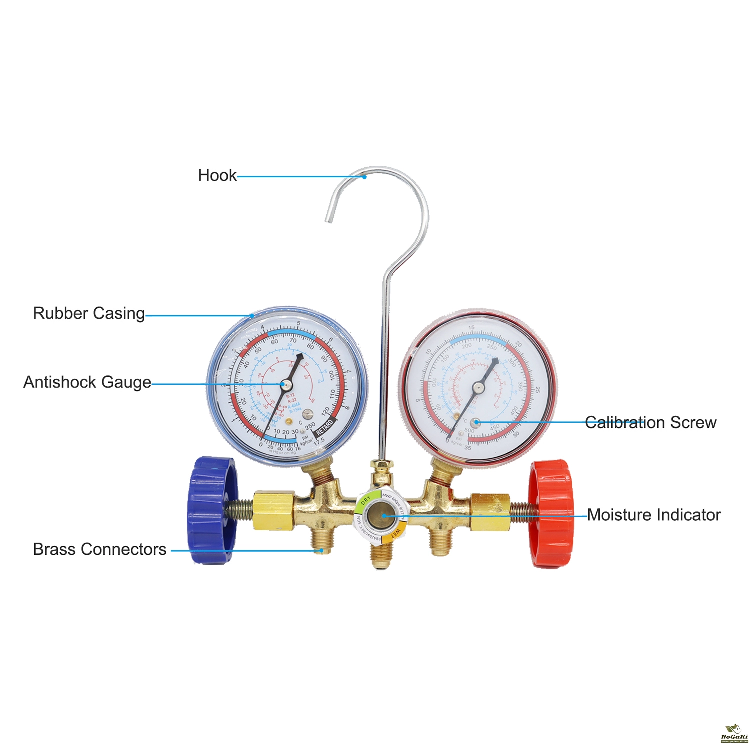 Gauges are marked for R12, R22, R404A and R134A pressure reading.