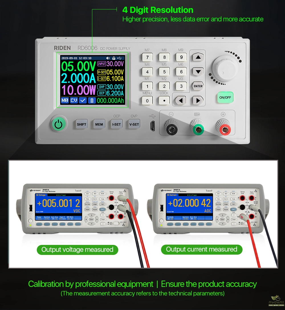 Output voltage accuracy between setting and measurement: ±(0.3%+3 digits)