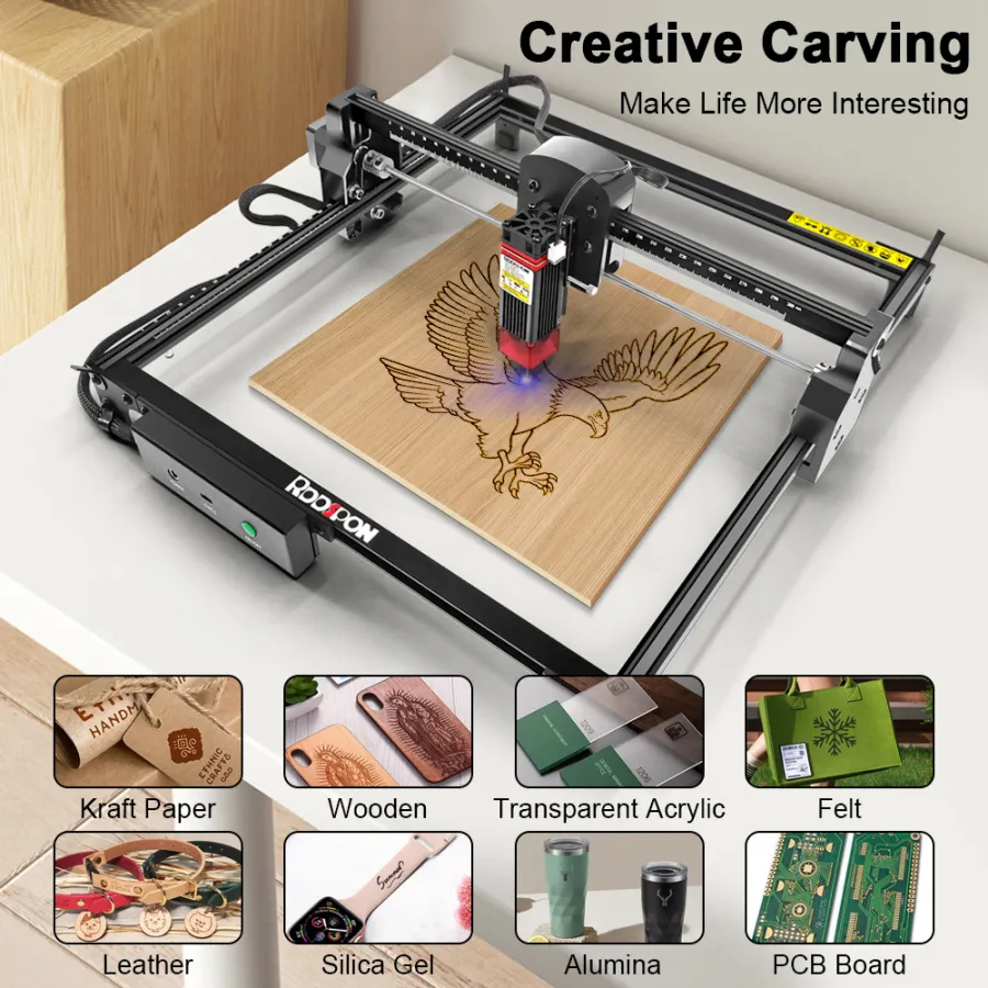 【Ultra-Fine Compression Laser】: Laser output optical power is 2.5W/7W, the high-power engraving is faster and more accurate. The ultra-fine laser precision is reduced to ± 0.01mm.