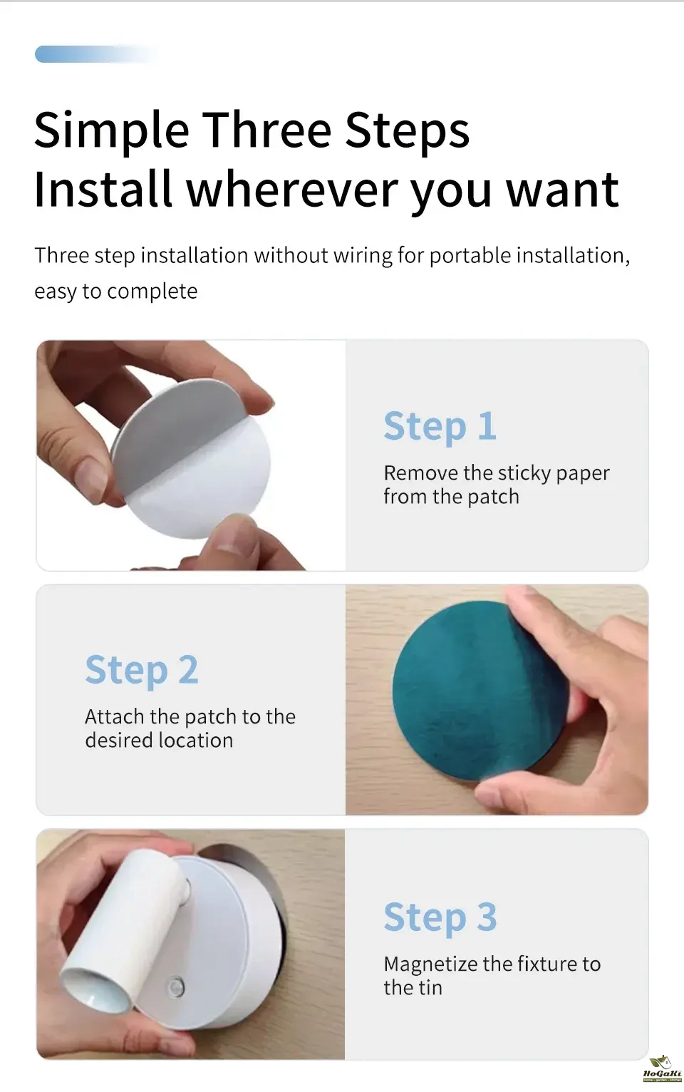 ♡ Magnetic wall sconce: wire-free, magnetic adsorption wall sconce, through the complimentary magnetic patch, paste the patch on the wall, and then you can install the wall sconce on it, simple and convenient, you can take it at will!