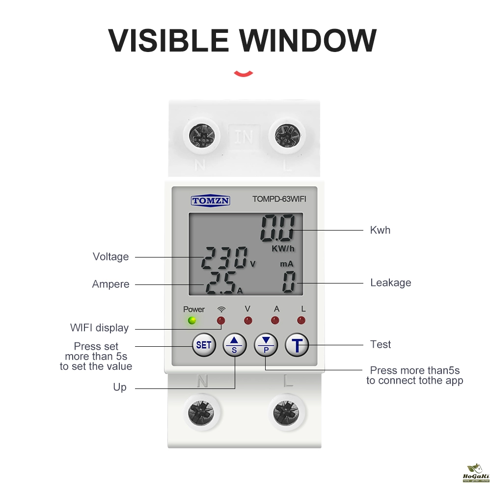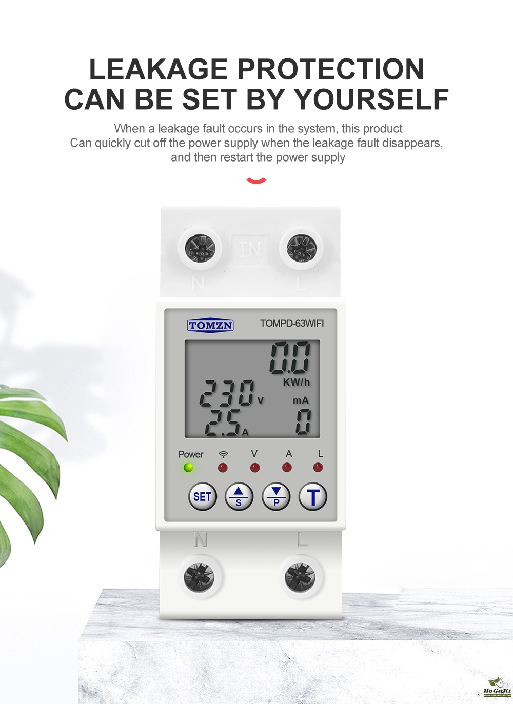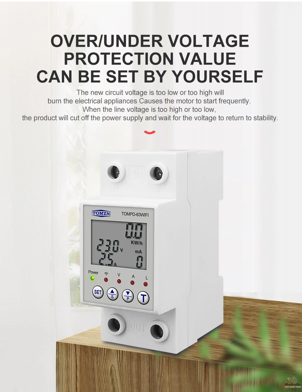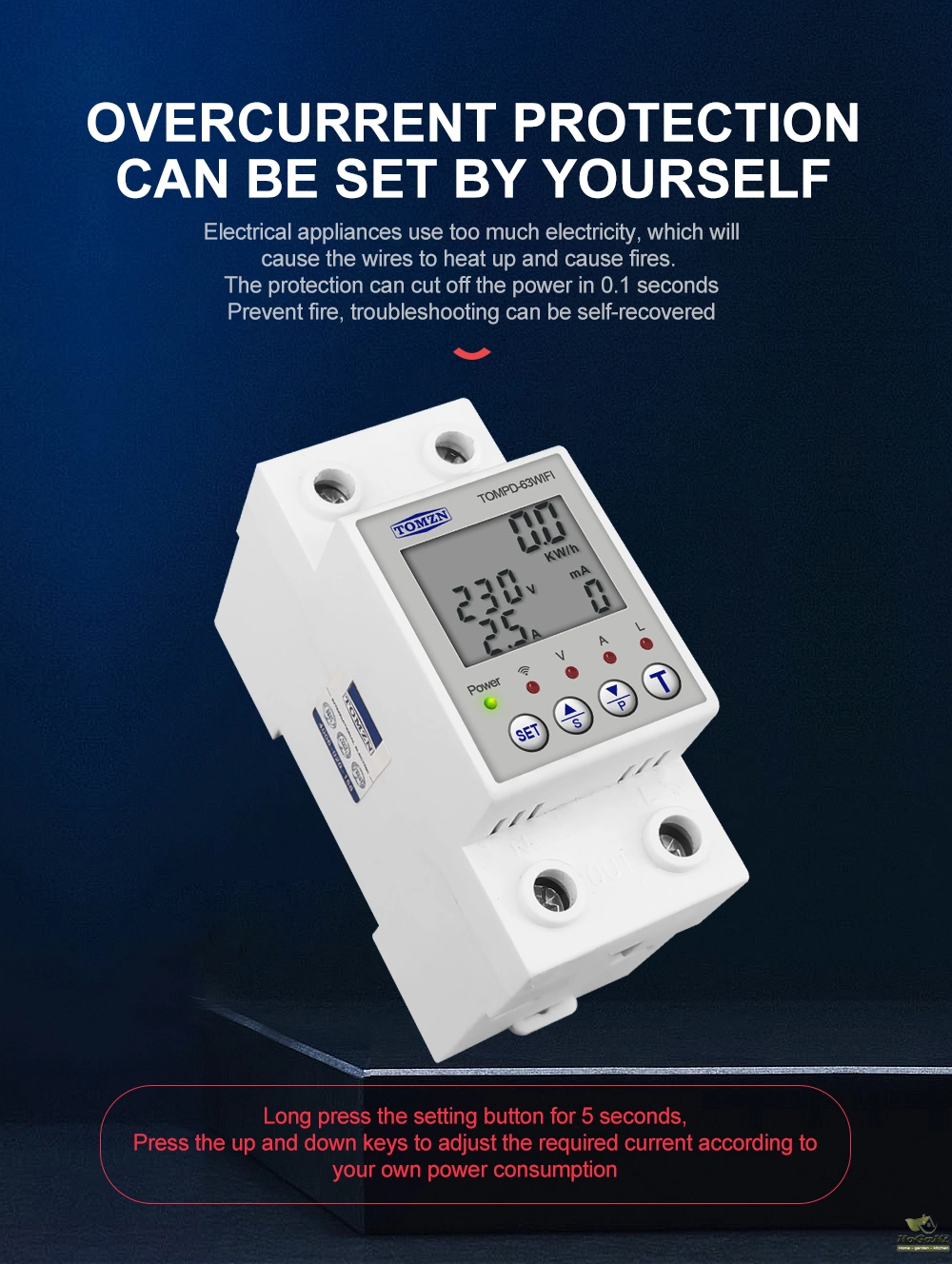 7.Over current protection 1A-63A (adjustable) (default: 63A)